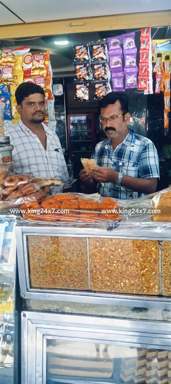 கரூர் மாவட்டம் குளித்தலை அருகே தோகைமலை ஒன்றியம் நாட்டார் கோவில் பட்டியை சேர்ந்தவர் முத்து. இவர் தனது மனைவி மற்றும் குழந்தைகளுடன் இன்று தோகைமலைக்கு சொந்த வேலையாக வந்துள்ளார். தோகைமலையில் உள்ள ஸ்வீட்ஸ் கடையில் தனது குழந்தைகளுக்கு குடை மிட்டாய் வாங்கி தந்துள்ளார். அந்த மிட்டாய்களில் சிறு வண்டுகள் மற்றும் புழுக்கள் இருந்துள்ளது. இதனைக் கண்டு முத்துவின் மனைவி குழந்தைகளிடமிருந்து மிட்டாய்களை வாங்கி கணவரிடம் தெரிவித்துள்ளார். மேலும் இது குறித்து குளித்தலை உணவு பாதுகாப்பு அலுவலரிடம் புகார் செய்துள்ளார். கரூர் கலெக்டர் தங்கவேல் உத்தரவின் படி ஆய்வு பணியில் இருந்த உணவு பாதுகாப்பு அலுவலர் லியோ தோகைமலையில் கெட்டுப்போன மிட்டாய்களை விற்பனை செய்த கடையை ஆய்வு செய்தனர். இதில் கடைக்காரருக்கு 2000 ரூபாய் அபராதம் விதித்து எச்சரிக்கை விடுத்தனர். இச்சம்பவம் அப்பகுதியில் பெரும் பரபரப்பை ஏற்படுத்தி உள்ளது. கலெக்டர் உத்தரவின் பெயரில் உணவு பாதுகாப்பு துறை அலுவலர்கள் மாவட்டம் முழுவதும் தீவிர ஆய்வு பணி செய்து வருகின்றனர்.