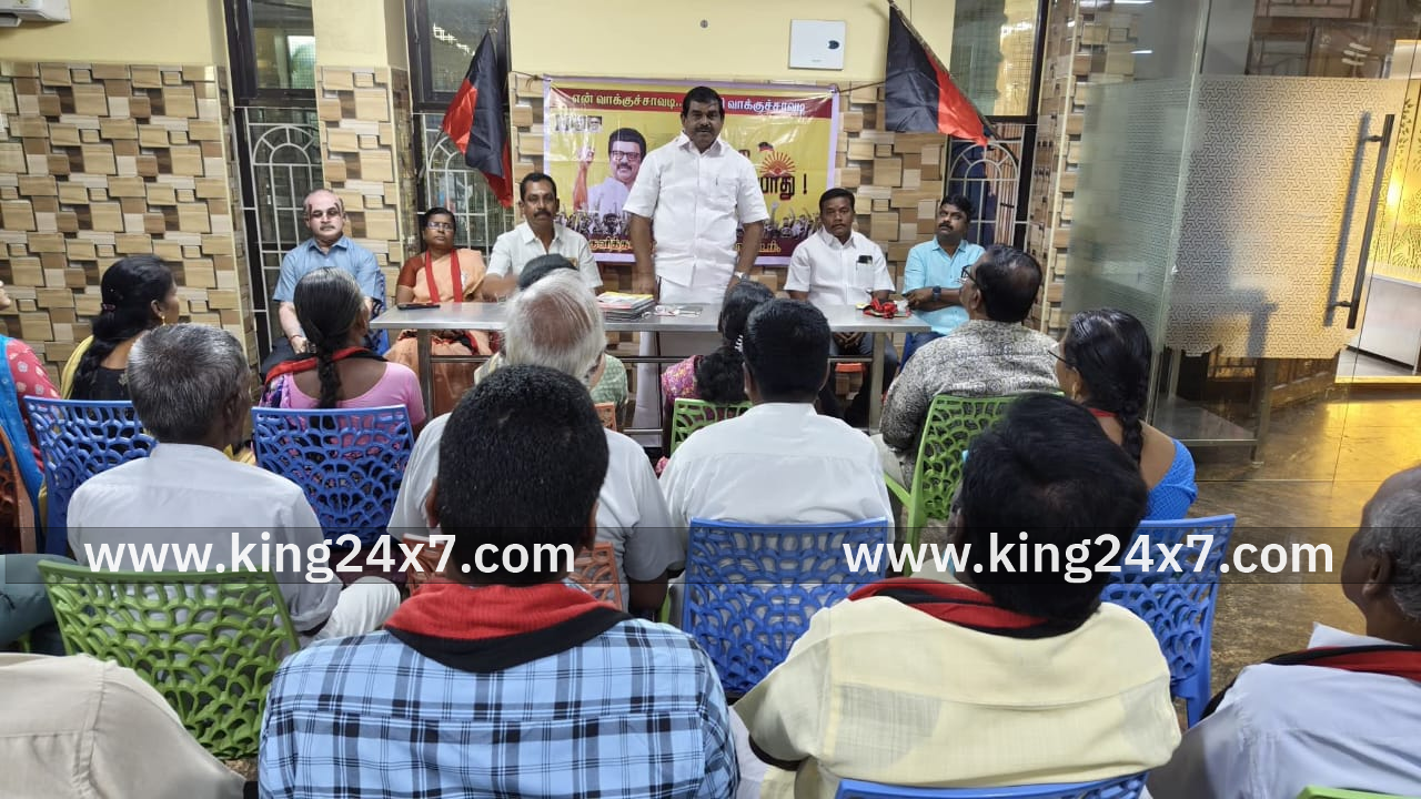 கரூர் மாவட்டம் குளித்தலை தனியார் திருமண மண்டபத்தில் திமுக சார்பில் என் வாக்கு சாவடி வெற்றி வாக்கு சாவடி பரப்புரை நிகழ்ச்சி 14, 21, 22 ஆகிய வார்டுகளில் பாகம் என் 53 ல் நேற்று நடைபெற்றது. திமுக குளித்தலை நகர செயலாளர் மற்றும் எம்எல்ஏ மாணிக்கம் கலந்து கொண்டு வாக்குச்சாவடி குழு உறுப்பினர்களிடம் கலந்துரையாடி, வீடு வீடாக சென்று, பொதுமக்களிடம் கழக அரசு சாதனைகளை எடுத்துரைத்து, பிரசுரங்களை விநியோகம் செய்தார். இந்நிகழ்வில் மண்டல பொறுப்பாளர்கள், மாவட்ட விவசாய அணி தலைவர் பாலசுப்ரமணியன், நகர பொருளாளர் தமிழரசன், நகர இளைஞர் அணி அமைப்பாளர் விஜயபிருந்தாவன், நகர் மன்ற உறுப்பினர்கள், நகர துணை செயலாளர் இராணி முருகேசன், கீதா பாலசுப்ரமணியன், நகர பொறியாளர் அணி அமைப்பாளர் கணேஷ், BLA2, BLC, BDA, பூத் இளைஞர், மகளிர் அணி மற்றும் கழக நிர்வாகிகள் கலந்து கொண்டனர்