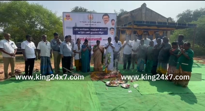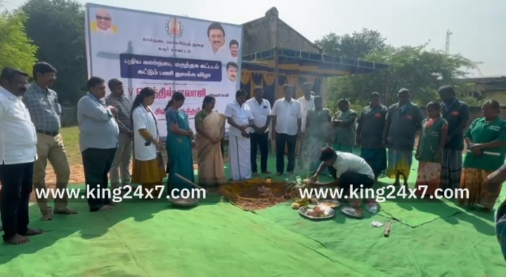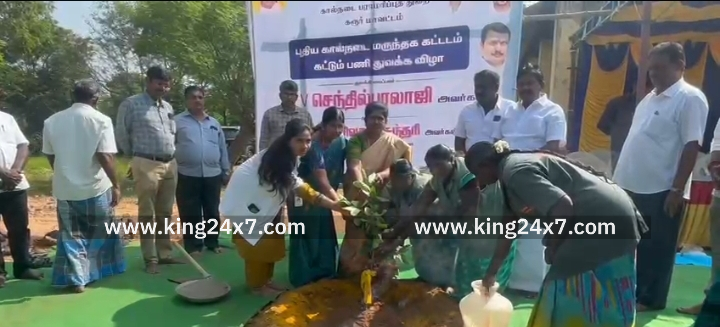 கரூரில் புதிய கால்நடை மருத்துவமனை கட்டுவதற்கான பூமி பூஜையில் பங்கேற்றார் எம்எல்ஏ சிவகாமசுந்தரி.