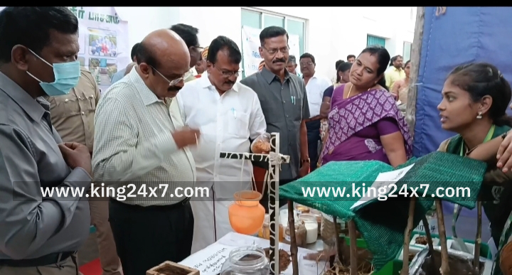கரூரில் நடைபெற்ற உயிர்ம வேளாண்மை விழிப்புணர்வு கருத்தரங்கு மற்றும் வேளாண் கண்காட்சி யில் பயனாளிகளுக்கு நலத்திட்டங்களை வழங்கி வாழ்த்து தெரிவித்த ஆட்சியர் தங்கவேல். கரூரை அடுத்த மணவாடி பகுதியில் உள்ள தனியார் கூட்ட அரங்கில் கரூர் மாவட்ட வேளாண்மை துறை சார்பில் மாவட்ட அளவிலான உயிர்ம வேளாண்மை விழிப்புணர்வு கருத்தரங்கு மற்றும் கண்காட்சி மாவட்ட ஆட்சியர் தங்கவேல் தலைமையில் நடைபெற்றது. இந்த நிகழ்ச்சியில் அரவக்குறிச்சி எம்எல்ஏ இளங்கோ கிருஷ்ணராயபுரம் எம்எல்ஏ சிவகாமசுந்தரி கரூர் மாநகராட்சி மேயர் கவிதா கணேசன் உள்ளிட்ட வேளாண் துறை அரசு அதிகாரிகள் விவசாயிகள் பொதுமக்கள் என ஏராளமானோர் கலந்து கொண்டனர். இன்று நடைபெற்ற கண்காட்சியில் வேளாண்மை துறை சார்ந்த பயனுள்ள தகவல்கள் அடங்கிய பல்வேறு அரங்குகள் அமைக்கப்பட்டு இருந்தது. இதில் மண் பரிசோதனை தண்ணீர் பரிசோதனை வேளாண்மை நவீன முறையிலான சாகுபடிக்கு தேவையான உபகரணங்கள் தொழில் முறை செயலாக்கங்கள் குறித்த விழிப்புணர்வை ஏற்படுத்தக்கூடிய அரங்குகள் அமைக்கப்பட்டிருந்தது. இந்த அரங்குகளை மாவட்ட ஆட்சியர் தங்கவேல் எம்எல்ஏக்கள் இளங்கோ மற்றும் சிவகாமசுந்தரி ஆகியோர் பார்வையிட்டு விவசாயிகளிடம் அது குறித்த விழிப்புணர்வை ஏற்படுத்தினர். பின்னர் நடைபெற்ற விழிப்புணர்வு கருத்தரங்கு கூட்டத்தில் கரூர் மாவட்டத்தின் பல்வேறு பகுதிகளை சேர்ந்த விவசாயிகள் கலந்து கொண்டனர். இந்த நிகழ்ச்சியில் வேளாண்துறைக்காக மத்திய மாநில அரசுகளின் செயலாக்கத்தில் உள்ள பல்வேறு திட்டங்கள் குறித்தும் அரசு மானியம் குறித்தும் விவசாயிகளுக்கு எடுத்துரைக்கப்பட்டது. நிகழ்ச்சியின் நிறைவில் பயனாளிகளுக்கு நலத்திட்டங்களை வழங்கி வாழ்த்து தெரிவித்தார் மாவட்ட ஆட்சியர் தங்கவேல். கருத்தரங்கு மற்றும் வேளாண் கண்காட்சி யில் பயனாளிகளுக்கு நலத்திட்டங்களை வழங்கி வாழ்த்து தெரிவித்த ஆட்சியர் தங்கவேல். கரூரை அடுத்த மணவாடி பகுதியில் உள்ள தனியார் கூட்ட அரங்கில் கரூர் மாவட்ட வேளாண்மை துறை சார்பில் மாவட்ட அளவிலான உயிர்ம வேளாண்மை விழிப்புணர்வு கருத்தரங்கு மற்றும் கண்காட்சி மாவட்ட ஆட்சியர் தங்கவேல் தலைமையில் நடைபெற்றது. இந்த நிகழ்ச்சியில் அரவக்குறிச்சி எம்எல்ஏ இளங்கோ கிருஷ்ணராயபுரம் எம்எல்ஏ சிவகாமசுந்தரி கரூர் மாநகராட்சி மேயர் கவிதா கணேசன் உள்ளிட்ட வேளாண் துறை அரசு அதிகாரிகள் விவசாயிகள் பொதுமக்கள் என ஏராளமானோர் கலந்து கொண்டனர். இன்று நடைபெற்ற கண்காட்சியில் வேளாண்மை துறை சார்ந்த பயனுள்ள தகவல்கள் அடங்கிய பல்வேறு அரங்குகள் அமைக்கப்பட்டு இருந்தது. இதில் மண் பரிசோதனை தண்ணீர் பரிசோதனை வேளாண்மை 