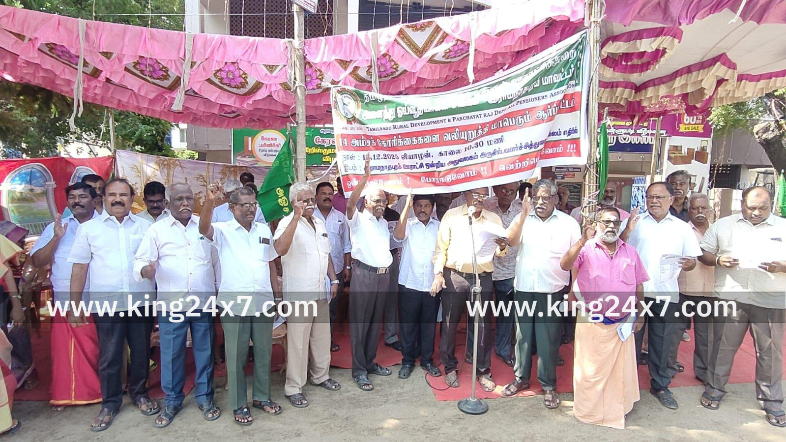 14 அம்ச கோரிக்கையிலே நிறைவேற்ற வலியுறுத்தி தமிழ்நாடு ஊரக வளர்ச்சி மற்றும் ஊராட்சி துறை ஓய்வூதியர்கள் சங்கத்தின் சார்பில் கண்டன ஆர்ப்பாட்டம் நடைபெற்றது;