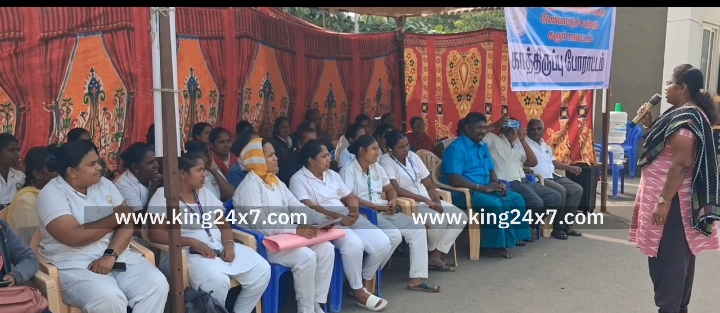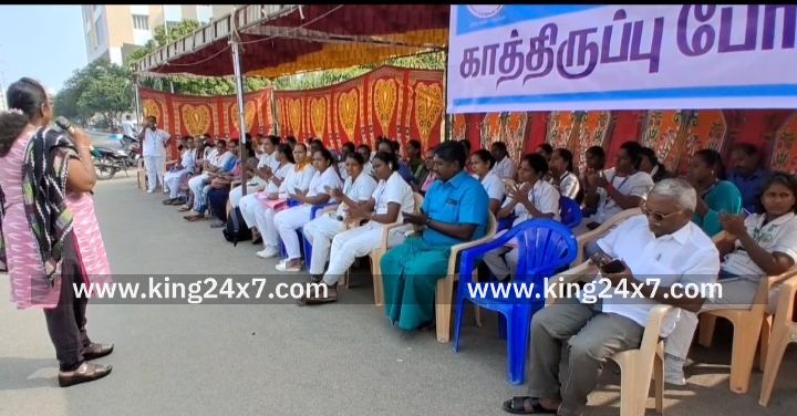 தமிழ்நாடு செவிலியர்கள் மேம்பாட்டு சங்கம் சார்பில் கரூரில் காத்திருப்பு போராட்டம்.