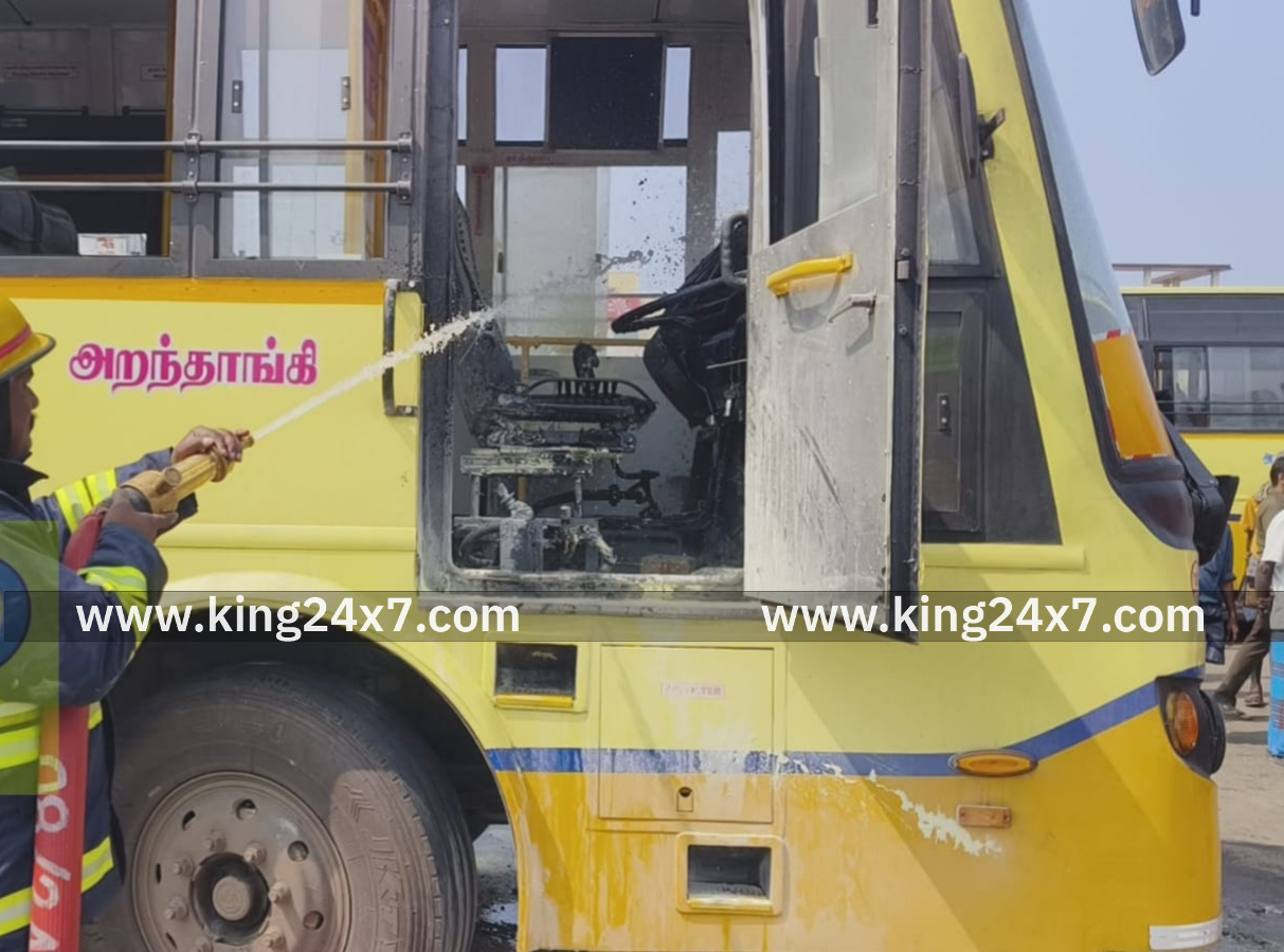 திண்டுக்கல் பேருந்து நிலையத்தில் நின்று கொண்டிருந்த அரசு பேருந்தில் திடீர் தீ விபத்து