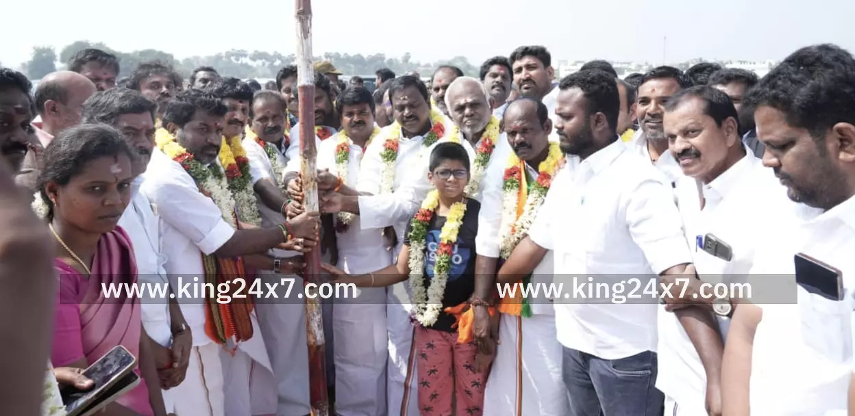 கருப்பு முருகானந்தம் விஜயபாஸ்கர் ஆகியோர் பந்தக்கால் நடும் விழாவை தொடங்கி வைத்தனர்;
