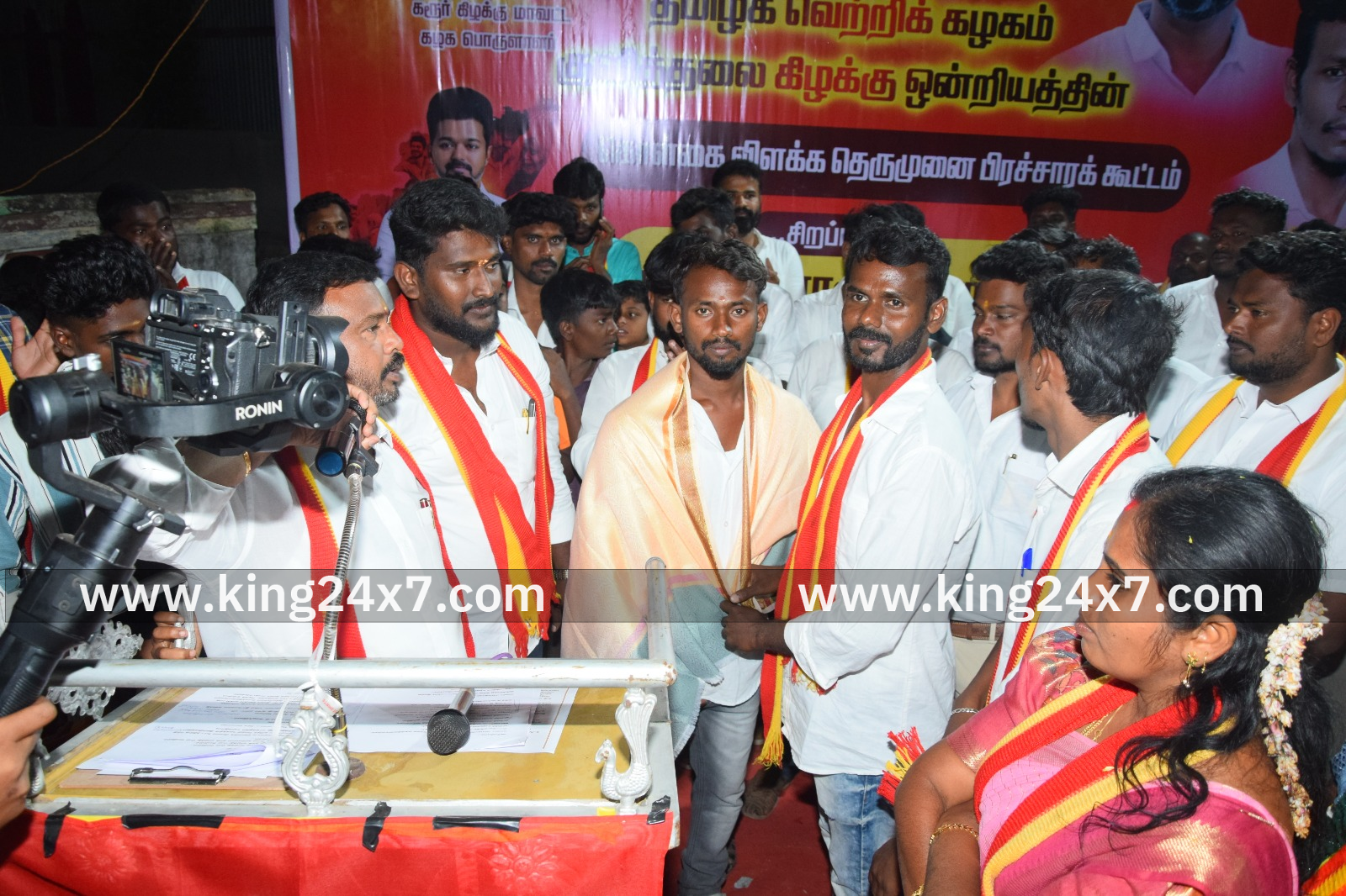 கரூர் மாவட்டம் குளித்தலை அருகே உள்ள இனுங்கூரில் குளித்தலை கிழக்கு ஒன்றிய த வெ க சார்பில் ஒன்றிய அலுவலக திறப்பு விழா மற்றும் தெருமுனை பிரச்சாரக் கூட்டம் நடைபெற்றது. புதிய அலுவலக திறப்பு விழாவில் கரூர் கிழக்கு மாவட்ட செயலாளர் பாலசுப்பிரமணியன் ரிப்பன் வெட்டி புதிய அலுவலகத்தை திறந்து வைத்தார். அதைத்தொடர்ந்து தெருமுனைப் பிரச்சாரக் கூட்டம் நடைபெற்றது. கூட்டத்திற்கு கரூர் கிழக்கு மாவட்ட செயலாளர் பாலசுப்பிரமணியன் தலைமை வகித்தார். கூட்டத்திற்கு குளித்தலை கிழக்கு ஒன்றிய செயலாளர் லாகுல் பிரசாந்த் வரவேற்றார். கூட்டத்தில் தலைமை கழக பேச்சாளர் தமிழன் ராஜீவ் காந்தி, மாவட்ட செயலாளர் பாலசுப்பிரமணியம் ஆகியோர் சிறப்புரையாற்றினார்கள். அப்போது அவர்கள் திமுகவை கடுமையாக விமர்சனம் செய்தனர். தெருமுனை பிரச்சார கூட்டத்தில் மாவட்ட, ஒன்றிய, நகர மற்றும் துணை அணி நிர்வாகிகள் என 300-க்கும் மேற்பட்டோர் கலந்து கொண்டனர்.