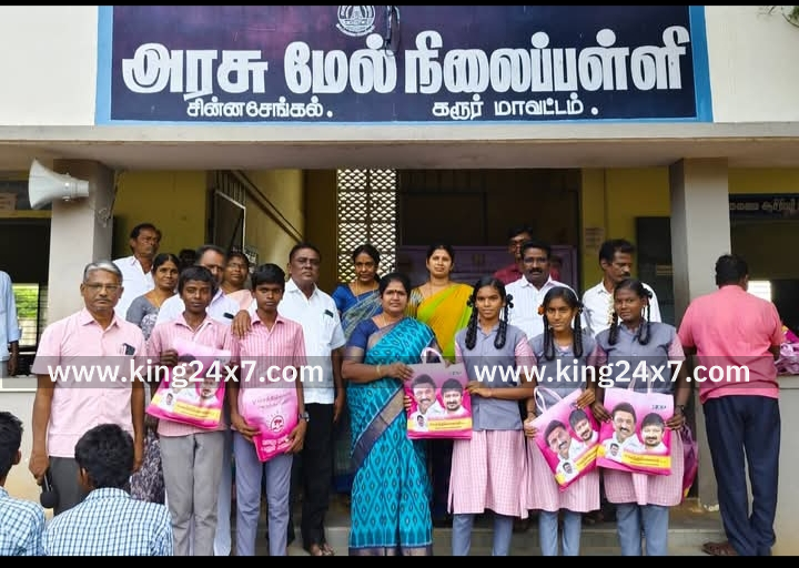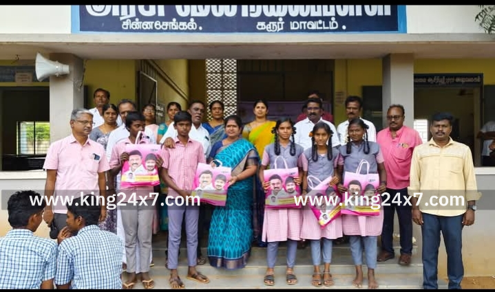 சின்ன சேங்கல் அரசு மேல்நிலைப் பள்ளியில் வினா- விடை புத்தகங்களை வழங்கினார் எம்எல்ஏ சிவகாமசுந்தரி. அரசு மேல்நிலைப் பள்ளியில் பயிலும் மாணாக்கர்கள் அரசு பொது தேர்வை எதிர் கொள்வதற்காக கரூர் திமுக மாவட்ட செயலாளர் செந்தில் பாலாஜி அறக்கட்டளை சார்பில் ஆண்டு தோறும் வினா விடை புத்தகங்கள் வழங்கப்பட்டு வருகிறது. வினா விடை புத்தகங்களில் உள்ள வினா விடைகளை மனப்பாடம் செய்வதன் மூலம் கூடுதல் மதிப்பெண்கள் மாணாக்கர்கள் பெற்று வருகிறார்கள். இதன் அடிப்படையில் இன்று கரூர் மாவட்டம் கிருஷ்ணராயபுரம் சட்டமன்ற தொகுதிக்குட்பட்ட சின்னசேங்கல் அரசு மேல்நிலைப் பள்ளியில் பயிலும் மானாக்கர்களுக்கு வினா விடை புத்தகங்கள் வழங்கும் நிகழ்ச்சி கிருஷ்ணராயபுரம் எம்எல்ஏ சிவகாமசுந்தரி தலைமையில் பள்ளி வளாகத்தில் நடைபெற்றது. இந்த நிகழ்ச்சியில் கிருஷ்ணராயபுரம் மேற்கு ஒன்றிய செயலாளர் கட்டளை ரவி ராஜா, சின்ன சேங்கல் அரசு மேல்நிலைப்பள்ளி தலைமை ஆசிரியர் மகாலிங்கம், பள்ளியில் பணியாற்றும் இருபால் ஆசிரியர்கள் மாணாக்கர்கள் என ஏராளமானோர் கலந்து கொண்டனர். இந்த நிகழ்ச்சியில் அரசு தேர்வை எளிதில் வெற்றி கொள்வதற்காக மாணாக்கர்களுக்கு வினா விடை புத்தகங்களை வழங்கி வாழ்த்து தெரிவித்தார் எம்எல்ஏ சிவகாமசுந்தரி. வினா விடை புத்தகங்களை பெற்றுக் கொண்ட மாணாக்கர்கள் எம்எல்ஏவுக்கும் செந்தில் பாலாஜி அறக்கட்டளைக்கும் தமிழக அரசுக்கும் நன்றி தெரிவித்தனர்.