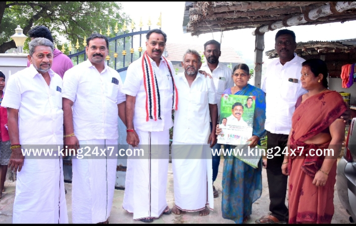 கரூர்-நாட்காட்டிகளை வழங்கி வாக்கு சேகரிக்கும் பணியில் ஈடுபட்டார் முன்னாள் அமைச்சர் எம் ஆர் விஜயபாஸ்கர்.