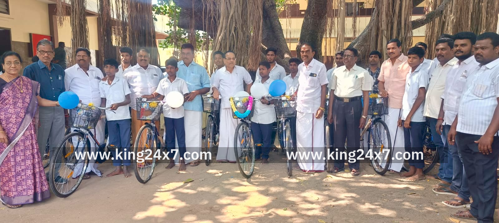 ஆரணி சிஎஸ்ஐ மேல்நிலைப்பள்ளியில் விலையில்லா சைக்கிள் வழங்கும் விழா நடைபெற்றதில் மாணவர்களுக்கு மிதிவண்டிகளை வழங்கினார் ஆரணி நகரமன்ற தலைவர் ஏ.சி.மணி.;