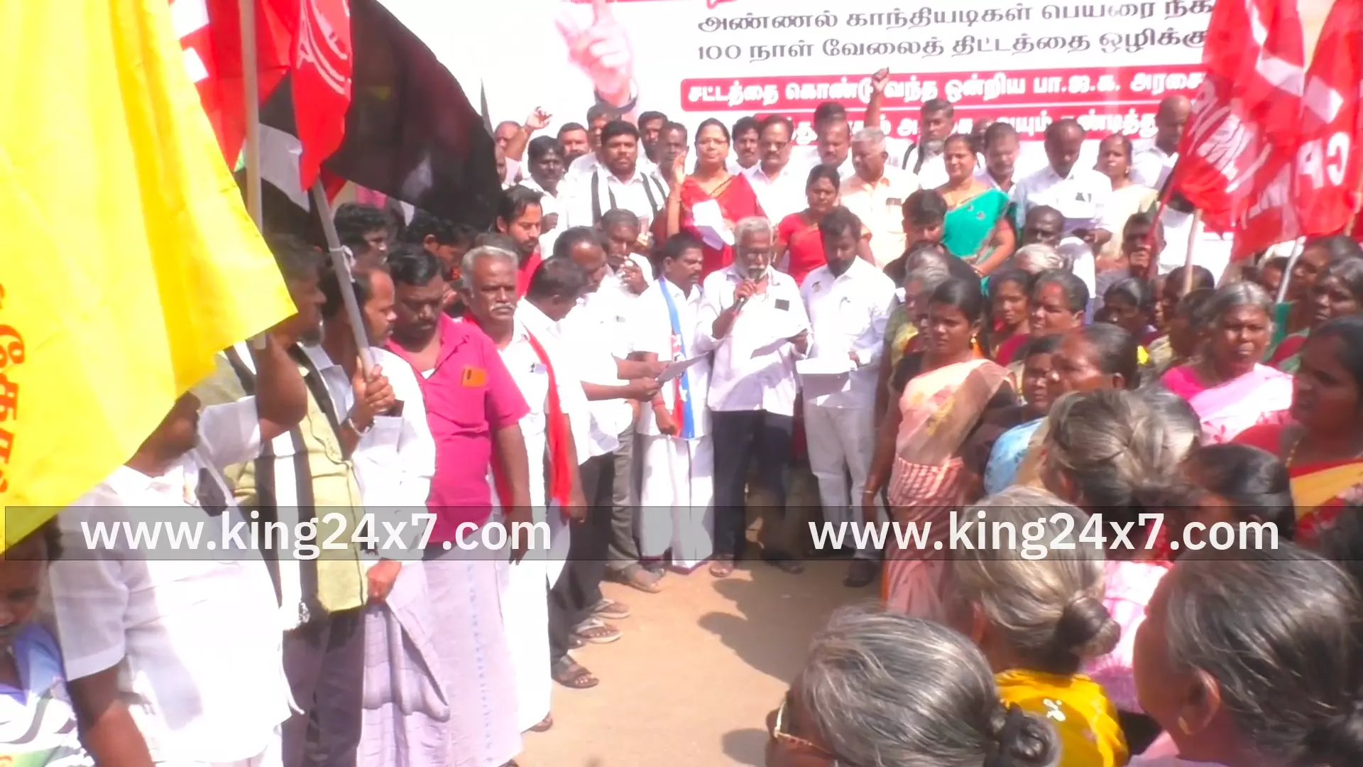 காந்தி பெயரை நீக்கி நூறு நாள் திட்டத்தை ஒழிக்கும் சட்டத்தைக் கொண்டு வந்த ஒன்றிய பாஜக அரசையும், அதற்கு துணைபோகும் அதிமுகவையும் கண்டித்து மதச்சார்பற்ற முற்போக்கு கூட்டணி கட்சியின் சார்பில் கண்டன ஆர்ப்பாட்டம் திருச்சி மாவட்டம், மணப்பாறை அருகே உள்ள பன்னாங்கொம்பு கிராமத்தில் நடைபெற்றது. இதில் மாநிலங்களவை உறுப்பினர் கவிஞர் சல்மா கண்டன உரையாற்றினார். ஆர்ப்பாட்டத்தில் ஒனாறிய அரசையும் துணைபோகும் அதிமுக வையும் கண்டித்து நூறுநாள் திட்ட தொழிலாளர்கள் கண்டன முழக்கங்கள் எழுப்பினர். இதில் திமுக ஒன்றிய செயலாளர் ராமசாமி, மனிதநேய மக்கள் கட்சியின் திருச்சி மாவட்ட தலைவர் பைஸ்அகமது , இந்திய கம்யூனிஸ்ட் இந்திரஜித், மார்க்சிஸ்ட் கட்சி நிர்வாகி சிதம்பரம், விடுதலை சிறுத்தைகள் மாவட்ட செயலாளர் சக்திஆற்றலரசு, எஸ்டிபிஐ முகமது கோயா, உள்ளிட்ட கூட்டணி கட்சி நிர்வாகிகள் மற்றும் நூற்றுக்கணக்கான பெண்கள் கலந்து கொண்டனர்.