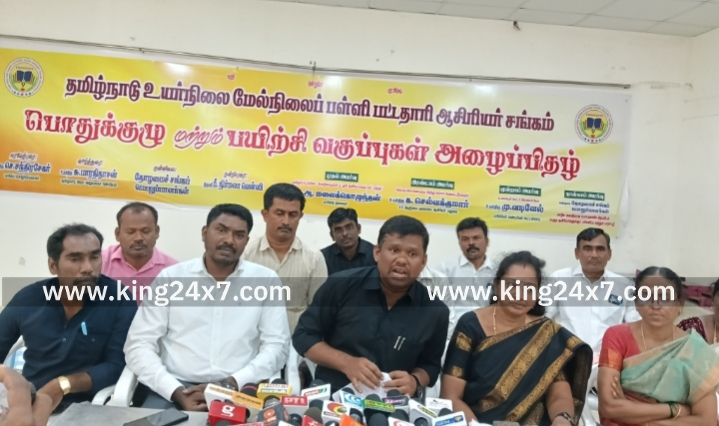 தேர்தல் கால வாக்குறுதி நிறைவேற்றாவிட்டால் காலவரையற்ற போராட்டம்-ஆசிரியர் சங்க மாநில தலைவர் மலைக்கொழுந்தன் பேட்டி. கரூர் அடுத்த ராயனூர் பகுதியில் உள்ள தனியார் கூட்ட அரங்கில் தமிழ்நாடு உயர்நிலை மேல்நிலைப்பள்ளி பட்டதாரி ஆசிரியர் சங்கத்தின் மாநில பொது குழு கூட்டம் சங்கத்தின் மாநில தலைவர் மலைக்கொழுந்தான் தலைமையில் நடைபெற்றது. இந்த கூட்டத்தில் சங்க நிர்வாகிகள், இருபால் உறுப்பினர்கள் என ஏராளமானோர் கலந்து கொண்டனர். கூட்டத்தின் நிறைவில் செய்தியாளர்களை சந்தித்த மாநில தலைவர் மலை கொழுந்தன், 2021 ல் திமுக சட்டமன்ற தேர்தல் அறிக்கைகள் சொன்ன புதிய ஓய்வூதிய திட்டம் கைவிடப்பட்டு பழைய ஓய்வூதிய திட்டத்தை மீண்டும் நடைமுறைக்கு கொண்டு வர வேண்டும் என்ற தேர்தல் கால வாக்குறுதிகளை உடனே நிறைவேற்றப்பட வேண்டும். பெண் பணியாளர்கள் மற்றும் ஆசிரியைகளுக்கு வருடத்திற்கு 12 நாள் சிறப்பு தற்செயல் விடுப்புகள் வழங்கப்பட வேண்டும். பள்ளி விடுமுறை நாட்களில் தேர்வு பணியில் ஈடுபடும் ஆசிரியர்களுக்கு அதற்கு ஈடாக மற்றொரு நாள் சிறப்பு தற்செயல் விடுப்புகள் அனைத்து வகை தேர்வுகளுக்கும் வழங்கப்பட வேண்டும். மாணவர்களின் எண்ணிக்கைக்கு ஏற்ப அனைத்து பள்ளிகளிலும் உடற்கல்வி ஆசிரியர்கள் நியமனம் செய்யப்பட வேண்டும். எட்டாம் வகுப்பு மாணவர்களுக்கு அறிவியல் வினாத்தாளில் திருத்தம் கொண்டு வர வேண்டும் மேலும் , அவர்கள் 100 மதிப்பெண்களுக்கு தேர்வு எழுதும் முறையினை மாற்றம் செய்ய வேண்டும் என்பது உள்ளிட்ட பத்து அம்ச தீர்மானங்கள் நிறைவேற்றப்பட்டுள்ளதாகவும், இதனை உடனடியாக தமிழக அரசு நிறைவேற்றி தர வேண்டும் எனவும், தவறினால் வருகிற 29ஆம் தேதி தமிழகம் முழுவதும் மாவட்ட தலைநகரங்களில் கோரிக்கைகளை வலியுறுத்தி ஆர்ப்பாட்டம் நடைபெறும் எனவும், ஜனவரி 6 ஆம் தேதி முதல் ஜாக்டோ ஜியோ உடன் இணைந்து காலவரையற்ற போராட்டத்தில் ஈடுபடுவோம் எனவும் தெரிவித்தார்.