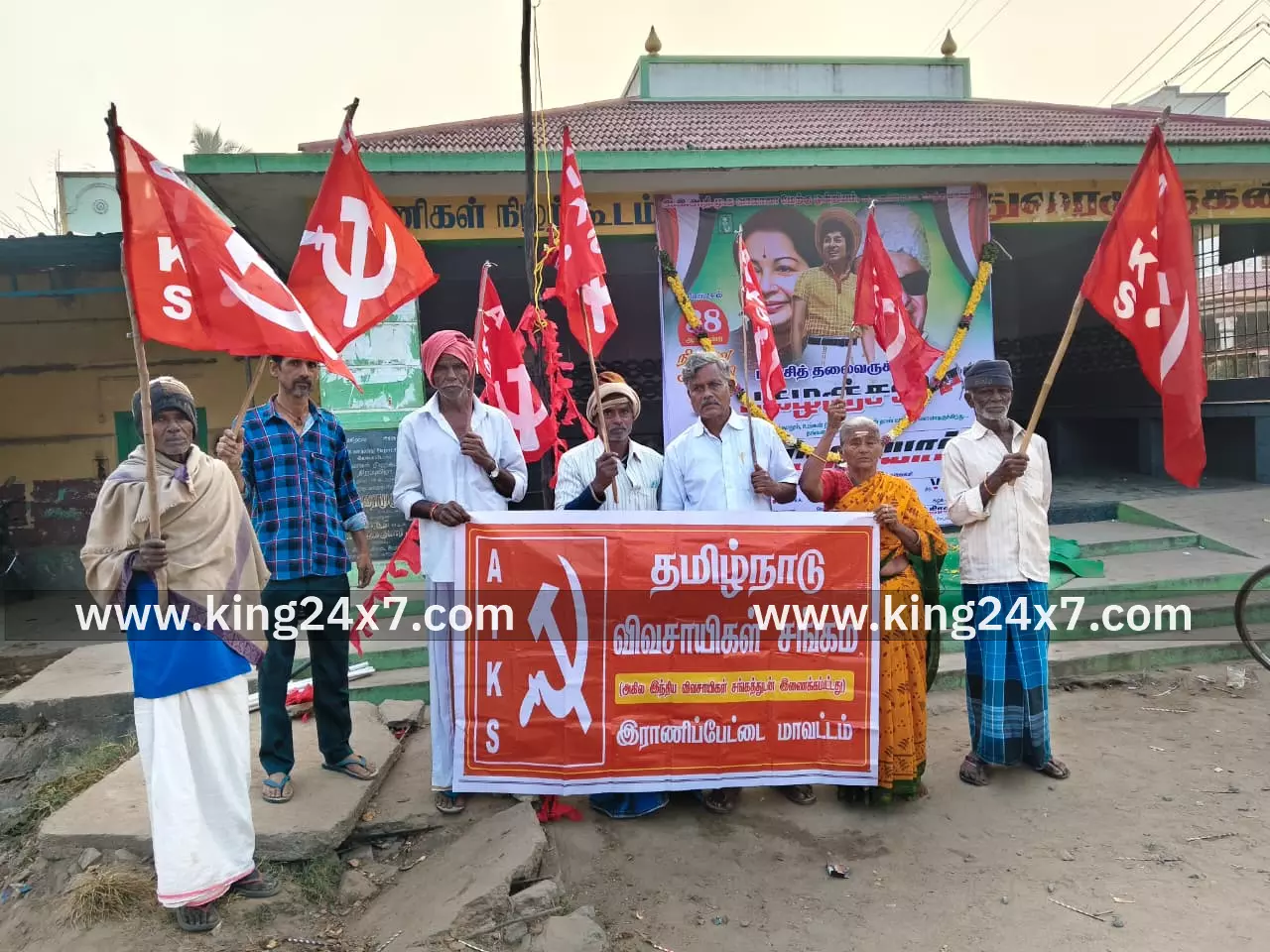 இராணிப்பேட்டை மாவட்டம் லாலாபேட்டை சாவடி அருகில் தமிழ்நாடு விவசாயிகள் சங்கம் சார்பில் கீழ்வெண்மணி தியாகிகளுக்கு நினைவு அஞ்சலி செலுத்தும் நிகழ்ச்சி தோழர் வி.மாசிலாமணி தலைமையில் நடைபெற்றது மூத்த தோழர் வி.தாட்சாயிணி கொடியேற்றினார் மாவட்ட செயலாளர் தோழர் எல்.சி.மணி பேசும் போது;