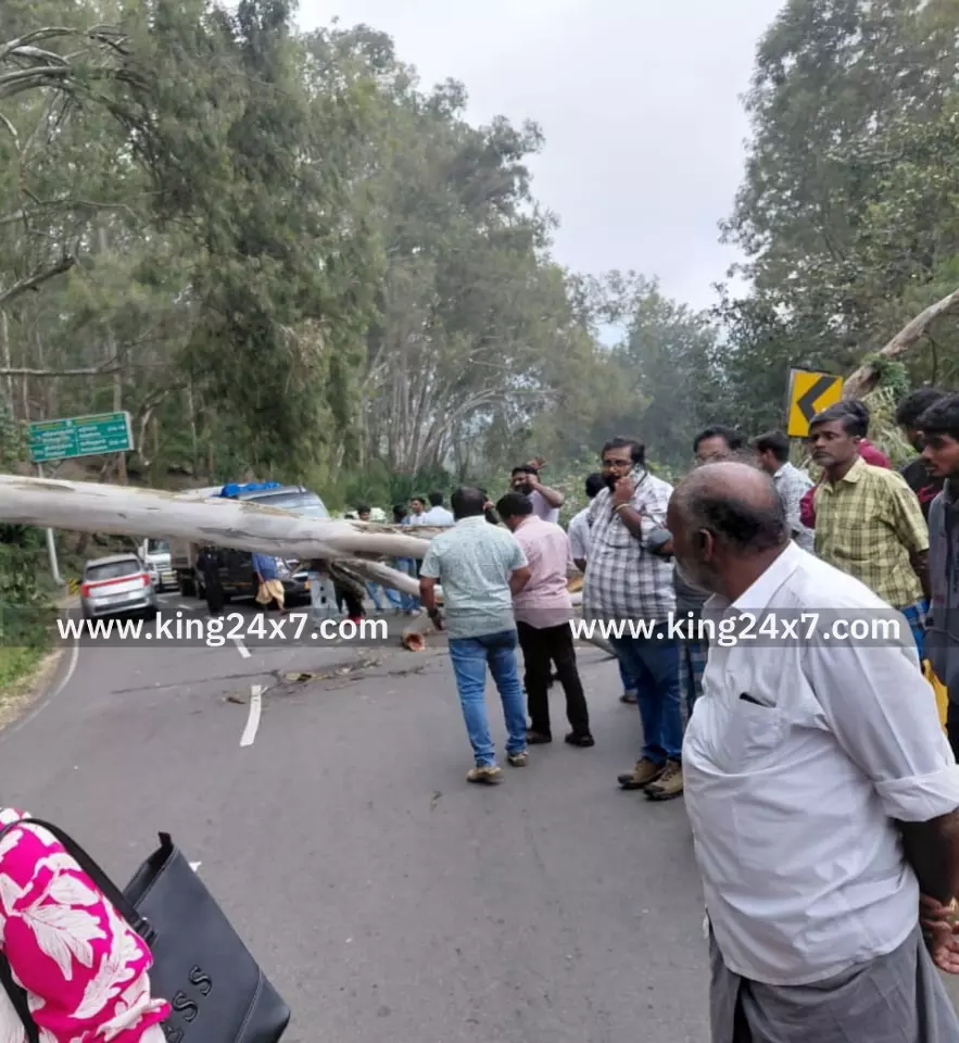 திண்டுக்கல் மாவட்டம், கொடைக்கானல், பெருமாள்மலை, அடுக்கம் பிரிவு அருகே யூகலிப்டஸ் மரம் விழுந்து போக்குவரத்து பாதிப்பு. 2 மணி நேரத்திற்கு மேலாக போக்குவரத்து பாதிப்பு 2 கிலோமீட்டர் தூரம் காத்திருக்கும் வாகனங்கள்