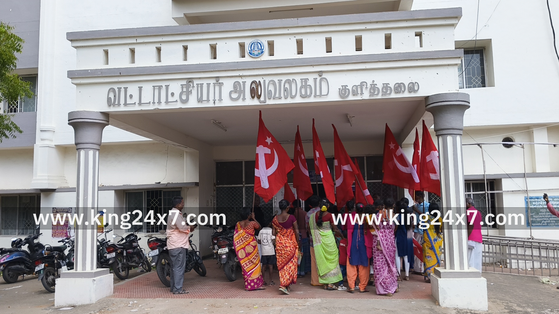 திமுக நகர் மன்ற தலைவரை கண்டித்து சிபிஐஎம் கட்சியினர் பொதுமக்களுடன் காத்திருப்பு போராட்டம்;