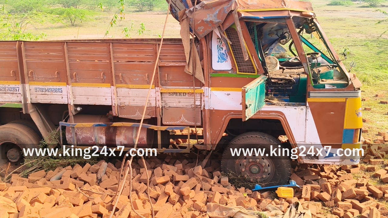 அறந்தாங்கியை அடுத்த பெருங்காடு பகுதியில் செங்கல் ஏற்றி சென்ற லாரி ஓட்டுனரின் கட்டுப்பாட்டை இழந்து சாலையோரம் கவிழ்ந்த விபத்தில் லாரி அப்பளம் போல் நொறுங்கியது;