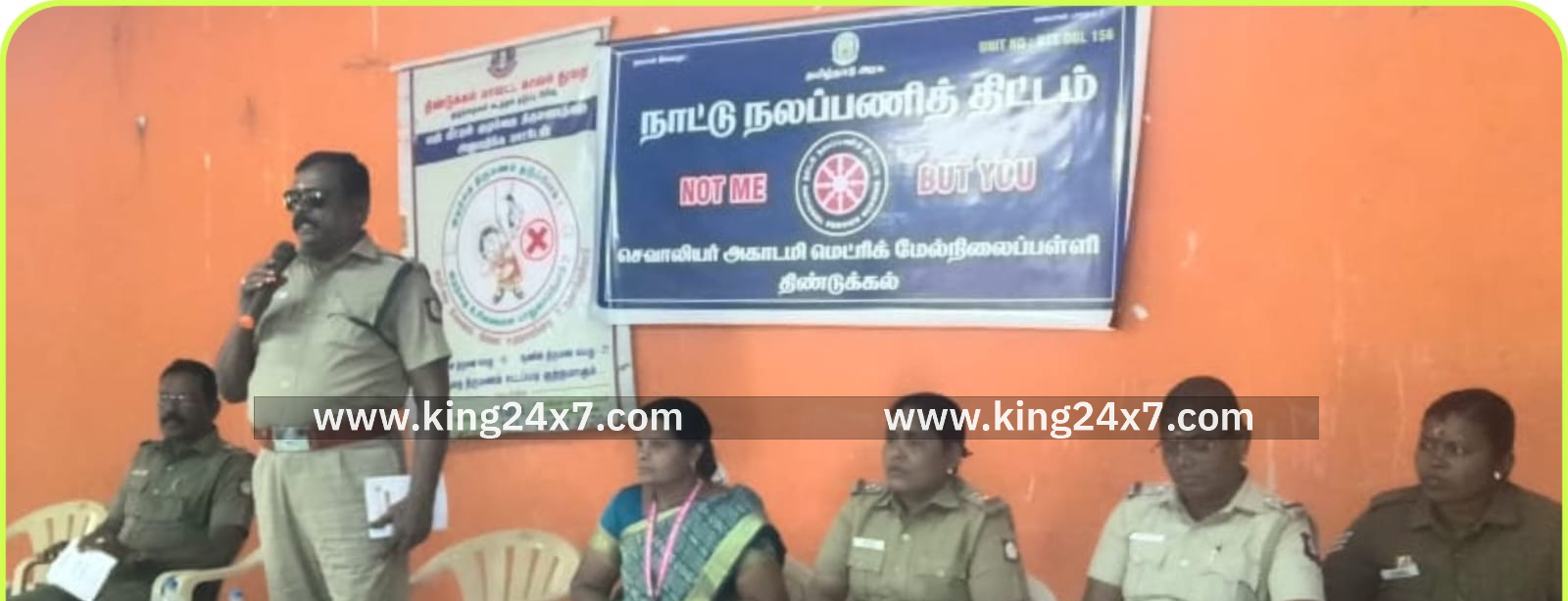 திண்டுக்கல் குழந்தைகள் கடத்தல் தடுப்பு பிரிவு மற்றும் சைபர் கிரைம் காவல்துறையினர் இணைந்து அதிகாரிப்பட்டி சமுதாயகூடத்தில் செவாலியர் அகாடமி மெட்ரிக் மேல்நிலைப்பள்ளி மாணவ, மாணவிகளுக்கு குழந்தை திருமணம், கடத்தல், POCSO சட்டம், சைபர் குற்றங்கள், போதைப்பொருள் தடுப்பு குறித்த விழிப்புணர்வு ஏற்படுத்தினர். மேலும் காவல் உதவி எண்கள் 1098,1930 குறித்து எடுத்துரைத்தனர். இந்த நிகழ்வில் புறநகர் DSP.சங்கர், சாணார்பட்டி காவல் நிலைய சார்பு ஆய்வாளர் வேலுமணி, குழந்தைகள் கடத்தல் தடுப்பு பிரிவு சிறப்பு ஆய்வாளர் அருணா உஷாநந்தினி, சைபர் கிரைம் காவல் நிலைய சிறப்பு ஆய்வாளர் ஈஸ்வரி, ஆசிரியர்கள், காவலர்கள்,பள்ளி மாணவ மாணவிகள் கலந்து கொண்டனர் .