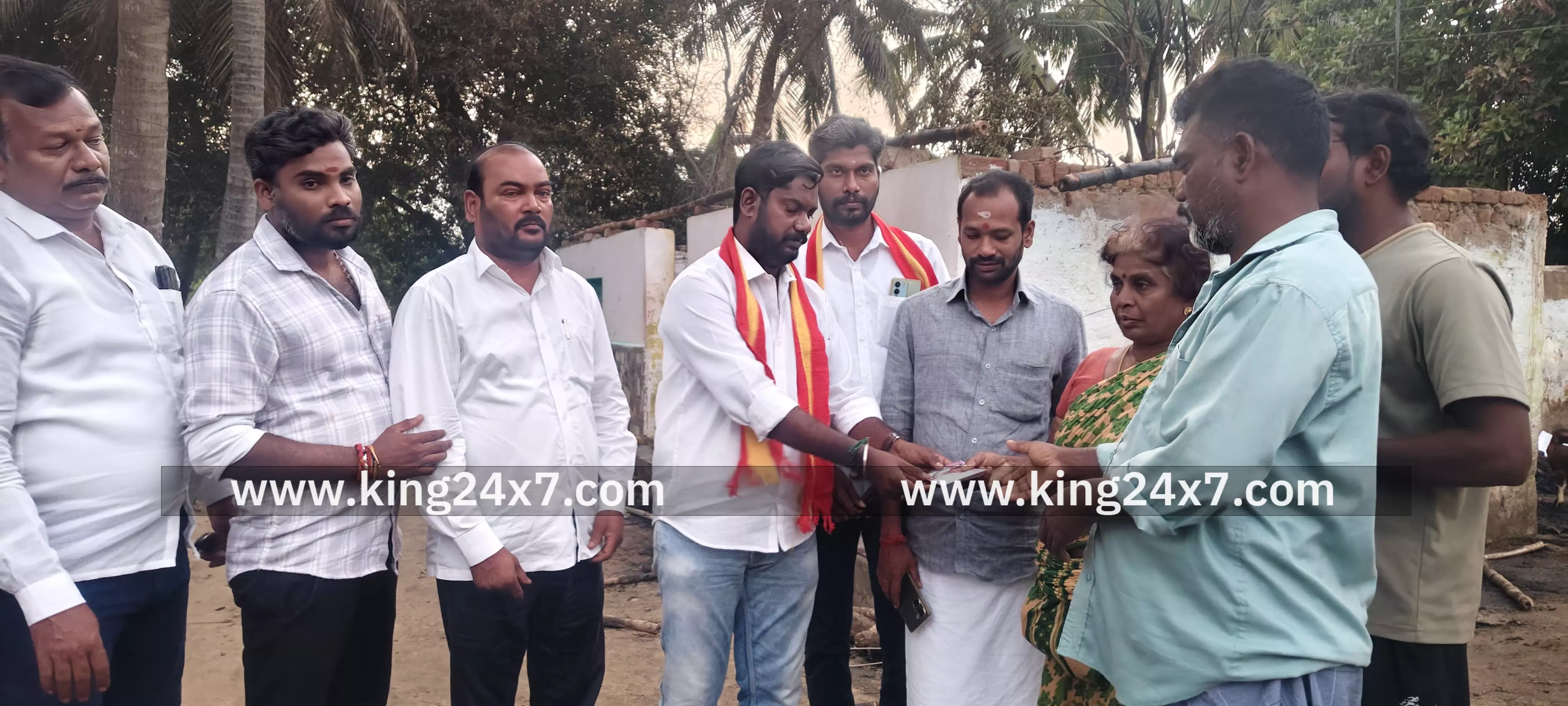 சீர்காழி அருகே நெப்பத்தூர் ஊராட்சியில் தீ விபத்தால் பாதிக்கப்பட்ட குடும்பத்தினருக்கு தமிழக வெற்றி கழகத்தினர் ஆறுதல் கூறி நிவாரண தொகையினை வழங்கினர்;