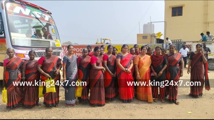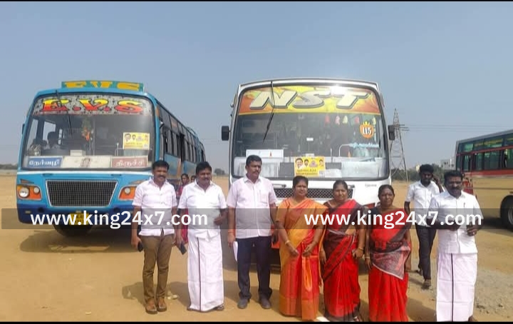 கிருஷ்ணராயபுரம்- வெல்லும் தமிழ் பெண்கள் மாநாட்டிற்கு எம்எல்ஏ சிவகாமசுந்தரி தலைமையில் பயணம். திமுக சார்பில் திருப்பூர் மாவட்டம் பல்லடத்தில் இன்று வெல்லும் தமிழ் பெண்கள் என்ற தலைப்பில் மகளிர் மாநாடு திமுக தலைவர் மு க ஸ்டாலின் தலைமையில் நடைபெறுகிறது. இதற்கு தமிழகத்தின் பல்வேறு மாவட்டங்களில் இருந்து பேருந்து மற்றும் சுற்றுலா வாகனங்களில் அலைகடலாய் திரண்டு மாநாட்டில் மகளிர் அணியினர் பங்கேற்று வருகின்றனர். இதன் அடிப்படையில் கரூர் மாவட்டம் கிருஷ்ணராயபுரம் சட்டமன்ற உறுப்பினர் சிவகாமசுந்தரி தலைமையில் மகளிர் அணியினர் பேருந்துகளில் பயணம் மேற்கொண்டனர். இந்த நிகழ்வில் கிருஷ்ணராயபுரம் சட்டமன்ற தொகுதி பார்வையாளரும், மாநில பொறியாளர் அணி துணை செயலாளருமான அம்பாள் நந்தகுமார், தாந்தோணி கிழக்கு ஒன்றிய செயலாளர் ரகுநாதன், கடவூர் வடக்கு ஒன்றிய செயலாளர் ராமலிங்கம், உப்பிடமங்கலம் பேரூராட்சி தலைவர் திவ்யா தங்கராஜ் உள்ளிட்ட கட்சி நிர்வாகிகள் கலந்து கொண்டு மாநாட்டிற்கு செல்லும் மகளிர் அணியினரை வழி அனுப்பி வைத்தனர்.