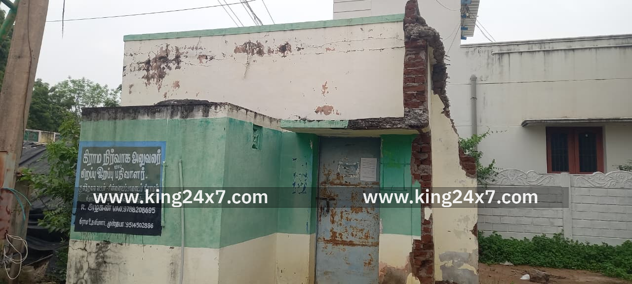 கரூர் மாவட்டம் தோகைமலை அருகே சின்னையம்பாளையம் கிராமத்தில் விஏஓ அலுவலக கட்டிடம் பழுதான நிலையில் உள்ளது. சிமெண்ட் கான்கிரீட் பூச்சுகள் பெயர்ந்து கட்டிடத்தில் விரிசல் ஏற்பட்டு ஆபத்தான சூழல் ஏற்பட்டு வருகிறது. எந்த நேரத்திலும் கட்டிடம் இடிந்து விழும் நிலையில் அலுவலர்களும், பொதுமக்களும் அச்சமடைந்து வருகின்றனர். கட்டிடத்தை அகற்றி புதிய கட்டிடம் அமைக்க பொதுமக்கள் கோரிக்கை விடுத்து உள்ளனர்.