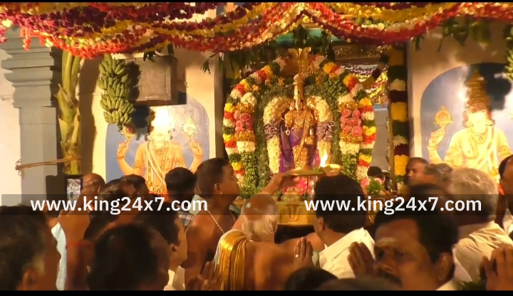 கரூரில் பிரசித்தி பெற்ற நூற்றாண்டுகள் பழமை வாய்ந்த அபய பிரதான ரெங்கநாத சுவாமி திருக்கோவிலில் வைகுண்ட ஏகாதசியை முன்னிட்டு சொர்க்கவாசல் திறப்பு. பக்தர்கள் பரவச தரிசனம். கரூர் மாநகரில் அமரவதி ஆற்றங்கரையில் அமைந்துள்ள பிரசித்தி பெற்ற நூற்றாண்டுகள் பழமை வாய்ந்த அபய பிரதான ரெங்கநாத சுவாமி திருக்கோவிலில் வைகுண்ட ஏகாதசியை முன்னிட்டு பகல் பத்து இராப் பத்து நிகழ்ச்சி கடந்த 20 -ம் தேதி துவங்கி வரும் 9 - ஆம் தேதி வரை நடைபெற்று வருகிறது. அதனை தொடர்ந்து நாள்தோறும் சுவாமி அலங்காரத்தில் எழுந்தருளி திருவீதி உலா நடைபெற்று வருகிறது. திருவிழாவின் முக்கிய நிகழ்வான பரமபத வாசல் எனும் சொர்க்கவாசல் திறப்பு இன்று அதிகாலை 4.30 மணியளவில் திறக்கப்பட்டது. அப்போது பக்தர்கள் கோவிந்தா, கோவிந்தா என்ற பக்தி முழக்கத்துடன் திறக்கப்பட்ட சொர்க்கவாசல் வழியாக ரெங்கநாத சுவாமி எழுந்தருளிய சுவாமிக்கு மகா தீபாரணை நடைபெற்றது. அதனை தொடர்ந்து கோவிலை வலம் வந்து கோவில் முன்புறமுள்ள மண்டபத்தில் எழுந்தருளி பக்தர்களுக்கு காட்சி தந்து வருகிறார். இதனை ஏராளமான பக்தர்கள் நீண்ட வரிசையில் நின்று சாமி தரிசனம் செய்து வருகின்றனர். அதிக பக்தர்கள் ஆலயம் வந்து தரிசனம் செய்வதால் போலீஸ் பாதுகாப்பு ஏற்பாடுகள் செய்யப்பட்டுள்ளது.