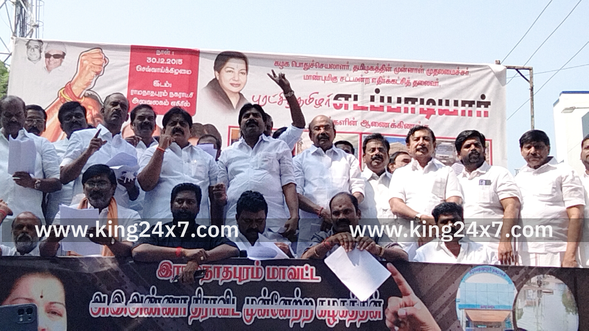 ராமநாதபுரம் நகராட்சியை கண்டித்து அனைத்து இந்திய அண்ணா திராவிட முன்னேற்ற கழகத்தின் சார்பில் ஆர்ப்பாட்டம் நடைபெற்றது
