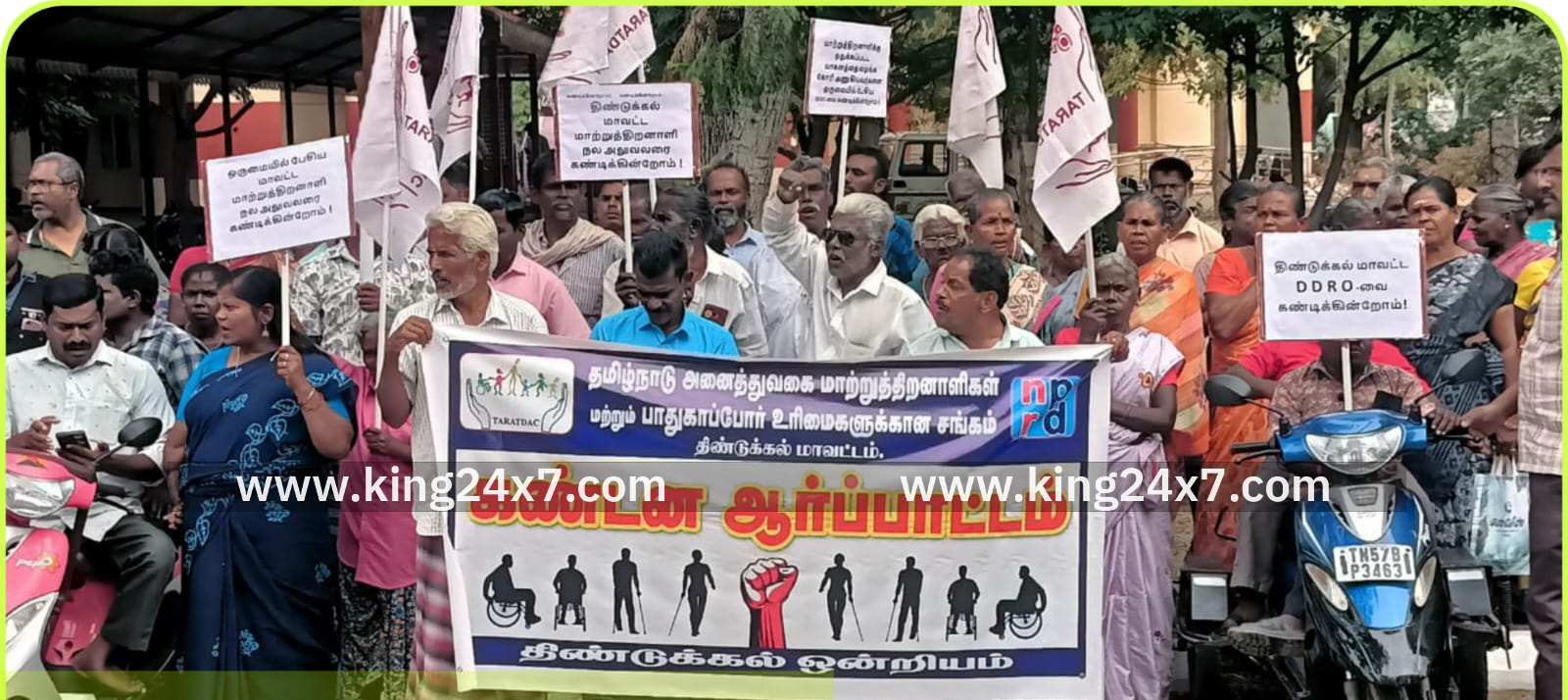 தமிழ்நாடு அனைத்து வகை மாற்றுத்திறனாளிகள் மற்றும் பாதுகாப்போர் உரிமைகளுக்கான சங்கம் திண்டுக்கல் மாவட்டம் சார்பாக திண்டுக்கல் மாவட்ட மாற்றுத்திறனாளி நல அலுவலரை கண்டித்து கண்டன ஆர்ப்பாட்டத்தில் ஈடுபட்டனர்