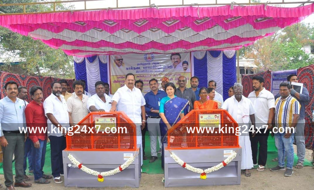 மருந்தகத்தில் கால்நடை பராமரிப்புத் துறை சார்பில் 40 பயனாளிகளுக்கு தலா ரூ.25.936 வீதம் ரூ.10.37 இலட்சம் மதிப்பீட்டிலான புல்நறுக்கும் கருவிகளை அரசின் 50 சதவீத மானியம் ரூ.5.18 இலட்சம் மதிப்பீட்டில் வழங்கினார்கள். உடன் மாவட்ட;