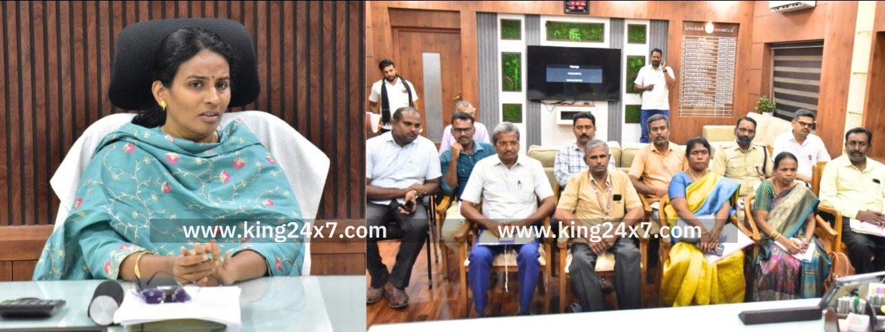 அரசு கல்லூரியல் பயிலும் மாணவ, மாணவியர்களுக்கு விலையில்லா மடிக்கணினி வழங்கும் திட்டம் தொடர்பாக துறைச் சார்ந்த அலுவலர்களுடனான ஆலோசனைக் கூட்டத்தில் பங்கெட்ற மாவட்ட ஆட்சியர்.