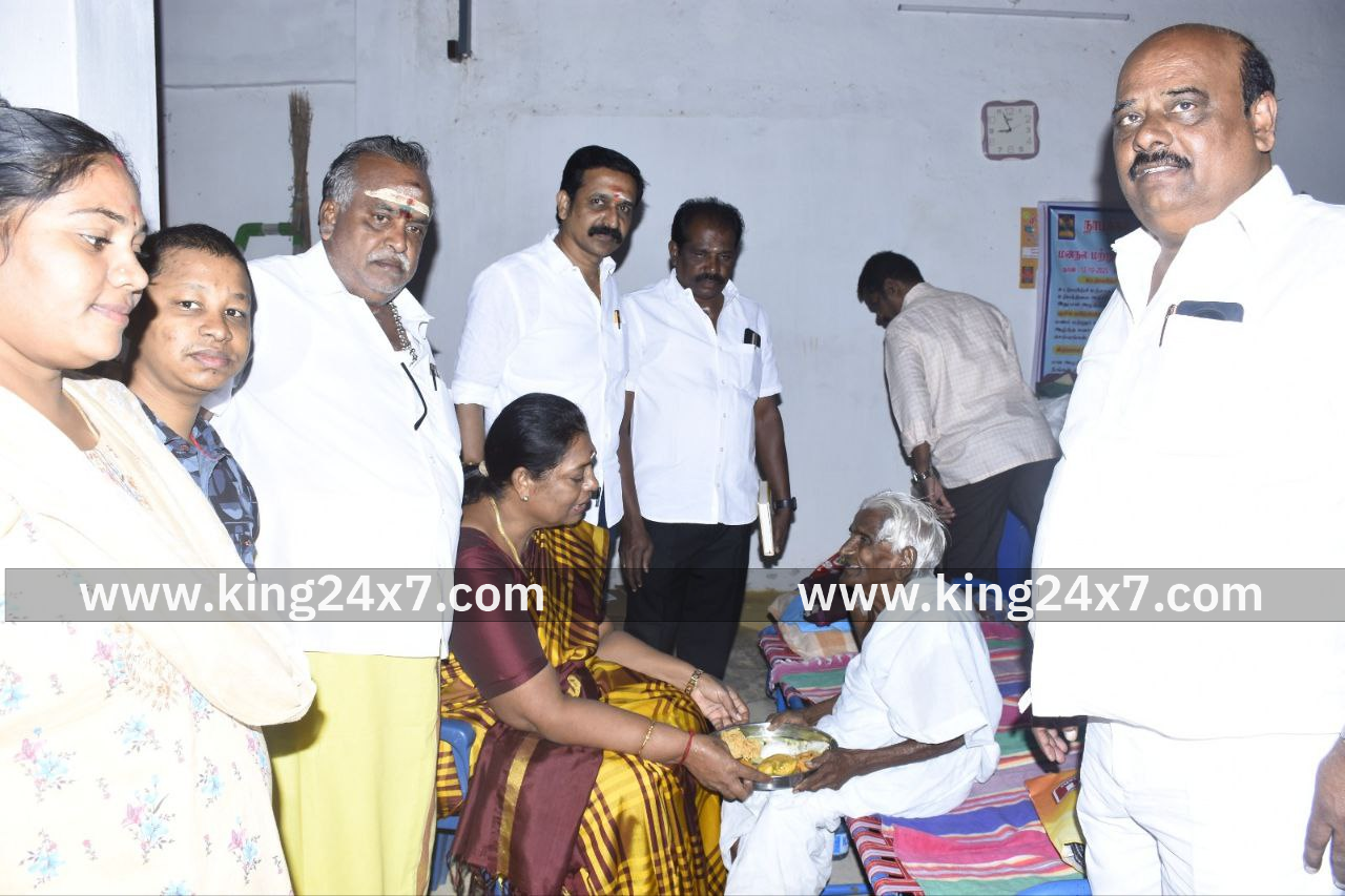 எம்.பி கனிமொழியின் பிறந்தநாளை முன்னிட்டு முதியோர் இல்லத்தில் நடைபெட்ற அன்னதானம் வழங்கும் நிகழ்ச்சி.