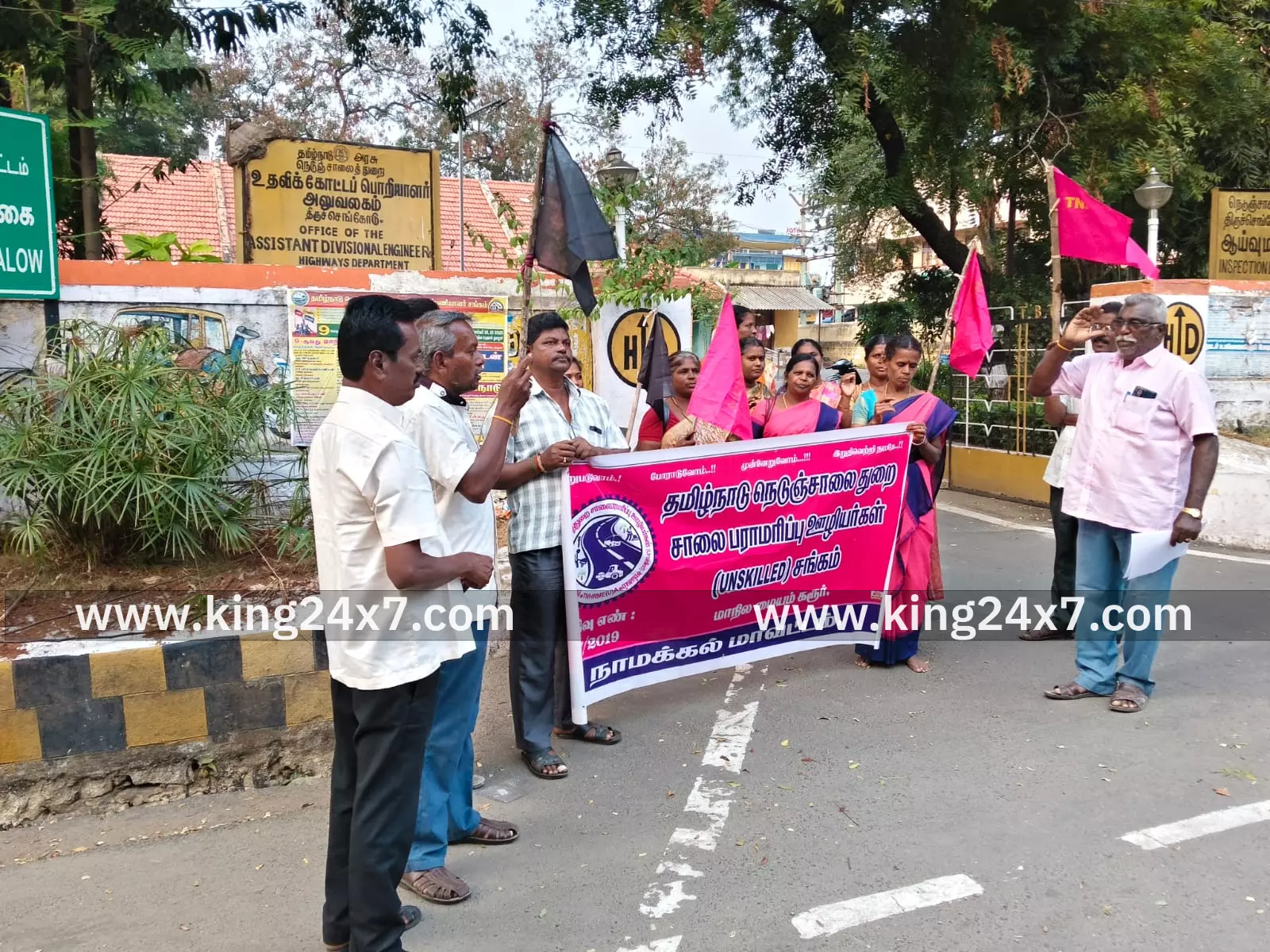 நெடுஞ்சாலைத்துறை சாலை பராமரிப்பு ஊழியர்கள் சங்கம் சார்பில் ஆர்ப்பாட்டம்