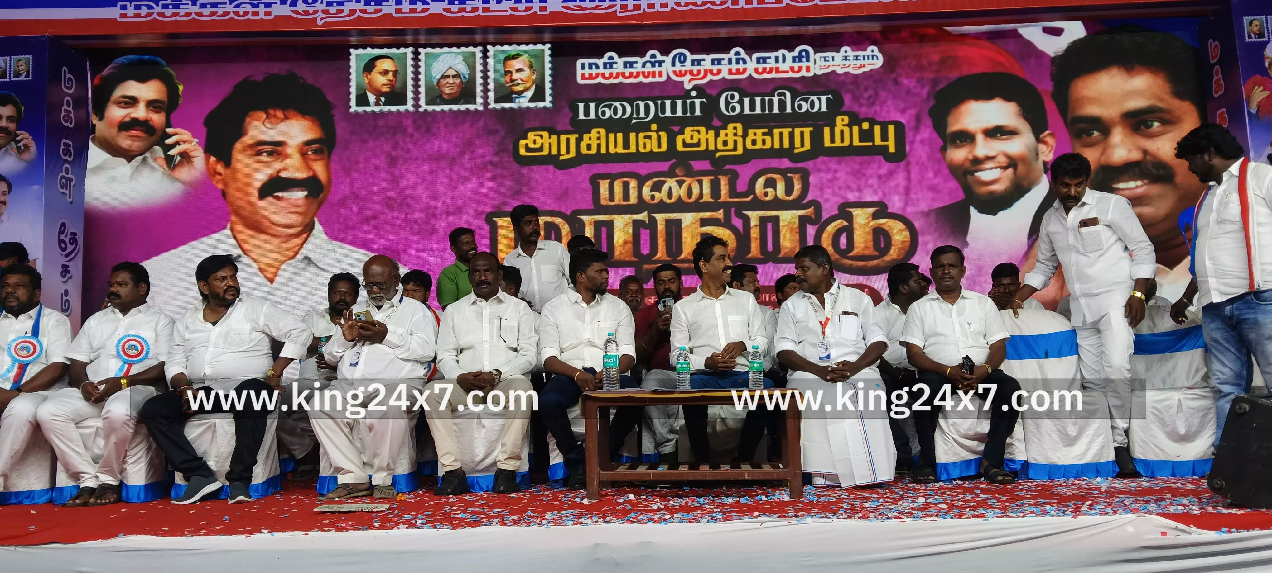 : இராணிப்பேட்டை மாவட்டம் முத்துகடை பகுதியில் மக்கள் தேசம் கட்சி சார்பில் பறையர் பேரின அரசியல் அதிகார மீட்பு மண்டல மாநாடு நடைபெற்றது.