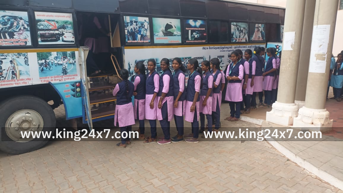 சாலை பாதுகாப்பு மாத விழாவை ஒட்டி மாணவர்களிடையே அரசு போக்குவரத்து கழகம் சார்பில் விழிப்புணர்வு கண்காட்சி