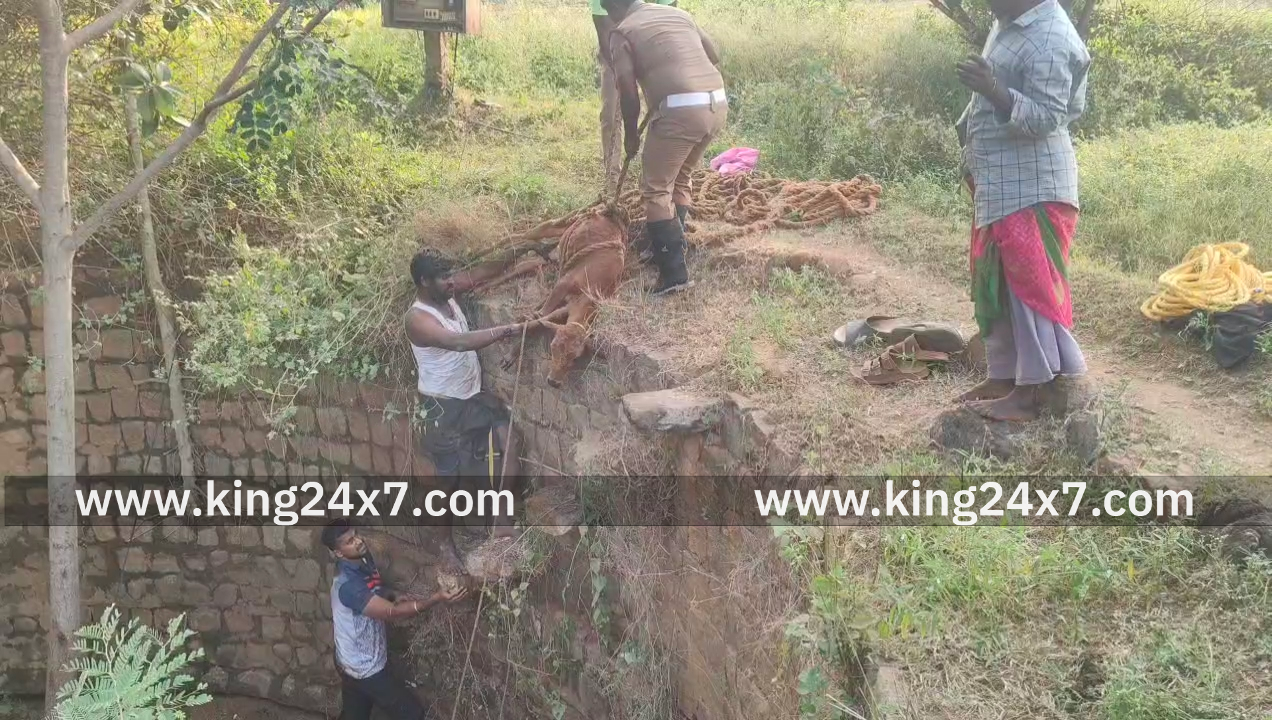 திருச்சி மாவட்டம் துவரங்குறிச்சி அடுத்த ஸ்டாலின் நகர் பகுதியில் அஞ்சலை 50 என்பவரது கன்று குட்டி மேய்ந்து கொண்டிருந்த போது எதிர்பாராத விதமாக வீட்டின் அருகில் இருந்த சுமார் 60 அடி ஆழம் கொண்ட கிணற்றில் தவறி விழுந்தது. இதைக் கண்ட உரிமையாளர் உடனடியாக துவரங்குறிச்சி தீயணைப்புத் துறையினருக்கு தகவல் அளித்தார். தகவலின் பெயரில் நிலை அலுவலர் மனோகர் தலைமையிலான தீயணைப்பு வீரர்கள் சம்பவ இடத்திற்கு விரைந்து சென்று கிணற்று தண்ணீரில் மிதந்து கொண்டிருந்த கன்றுகுட்டியை கிணற்றில் இறங்கி கயிற்றின் உதவியுடன் மீட்டு உரிமையாளரிடம் ஒப்படைத்தனர். இதனால் அப்பகுதியில் சிறிது நேரம் பரபரப்பு ஏற்பட்டது.