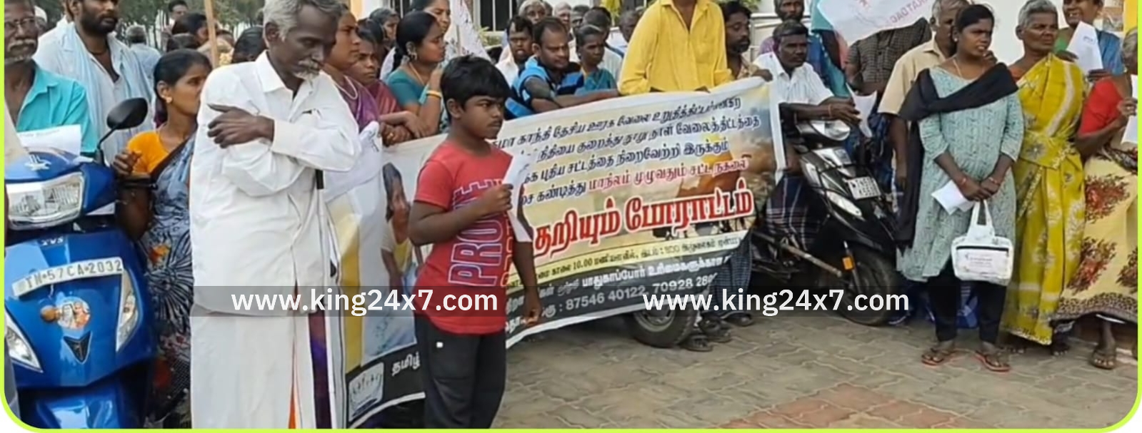 தமிழ்நாடு அனைத்து வகை மாற்றுத்திறனாளிகள் மற்றும் பாதுகாப்போர் உரிமைகளுக்கான சங்கம் சார்பாக மகாத்மா காந்தி தேசிய ஊரக வேலை உறுதித் திட்டம் என்ற பெயரை மாற்றி, நிதியை குறைந்து, 100 நாள் வேலைத்திட்டத்தை சீர்குலைக்க புதிய சட்டத்தை நிறைவேற்றிய மத்திய அரசை கண்டித்து சட்ட நகலை கிழித்தெறியும் போராட்டம் நடைபெற்றது