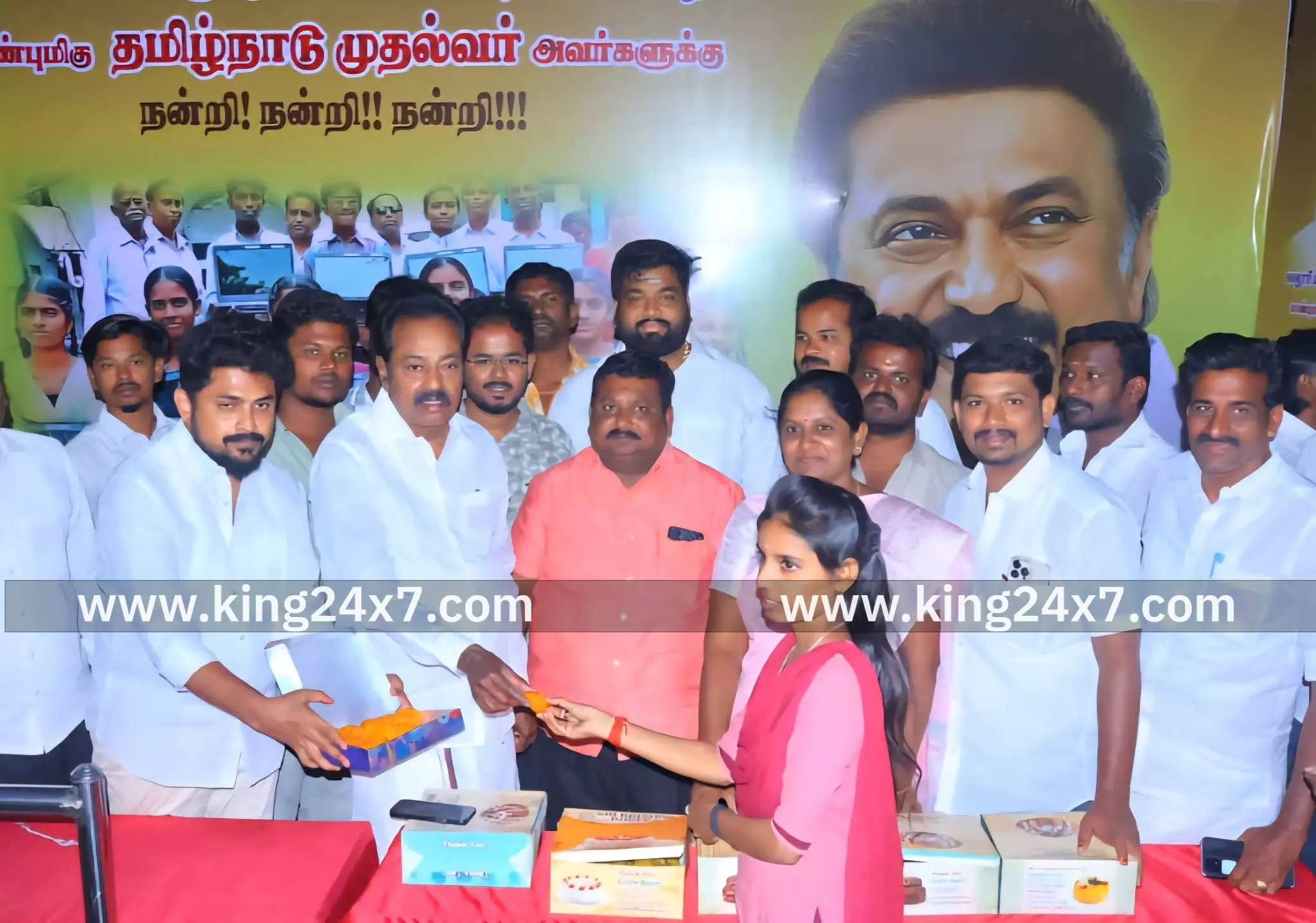 கல்லூரி மாணவர்களுக்கு "உலகம் உங்கள் கையில்" திட்டத்தின் மூலம் விலையில்லா மடிகணினி மற்றும் செயற்கை நுண்ணறிவு (AI) சந்தாவுடன் வழங்கி இன்று தொடங்கி வைத்தார். புதுக்கோட்டை கலைஞர் கருணாநிதி கலை கல்லூரி வளாகத்தில் புதுக்கோட்டை வடக்கு மற்றும் தெற்கு மாணவரணி சார்பில் மாண்புமிகு தமிழ்நாடு முதலமைச்சர் அவர்களுக்கு நன்றி தெரிவிக்கும் வகையில் மாவட்ட கழக செயலாளர் வழக்கறிஞர் KK.செல்லபாண்டியன் தலைமையில் மாணவர்களுக்கு இனிப்புகள் வழங்கப்பட்டது. புதுக்கோட்டை தொகுதி சட்டமன்ற உறுப்பினர் டாக்டர் வை.முத்துராஜா, மாநகர மேயர் திலகவதி செந்தில் துணை மேயரும் வடக்கு மாநகர பொறுப்பாளருமான M.லியாகத் அலி வடக்கு மாவட்ட மாணவரணி அமைப்பாளர் KSC.இளையசூரியன் தெற்கு மாவட்ட மாணவரணி அமைப்பாளர் ஆ.கலைச்செல்வன் உள்ளிட்ட துணை அமைப்பாளர்கள் மற்றும் கழக நிர்வாகிகள் பங்கேற்றனர். கல்லூரி மாணவர்கள் மாண்புமிகு தமிழ்நாடு முதலமைச்சர் தலைவர் தளபதியார் அவர்களுக்கு நெஞ்சம் நிறைந்த நன்றிகளை தெரிவித்தனர்.