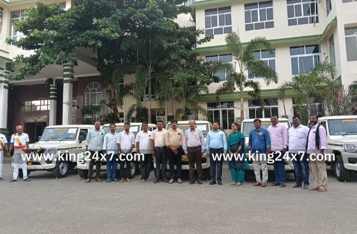 கரூர் அரசு அதிகாரிகளின் பயன்பாட்டுக்காக புதிய ஈப்பு வாகனங்களை வழங்கி வாழ்த்தினார் ஆட்சியர் தங்கவேல்.