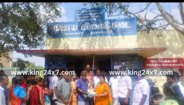 தரகம்பட்டியில் குடும்ப அட்டைதாரர்களுக்கு பொங்கல் தொகுப்பினை வழங்கி வாழ்த்து தெரிவித்தார் எம் எல் ஏ சிவகாமசுந்தரி. கரூர் மாவட்டம் கிருஷ்ணராயபுரம் சட்டமன்ற தொகுதிக்குட்பட்ட தரகம்பட்டி பகுதியில் வசிக்கும் பொது மக்களுக்கு அப்பகுதியில் உள்ள நியாய விலை கடையில் குடும்ப அட்டைதாரர்களுக்கு பொங்கல் தொகுப்பு வழங்கும் நிகழ்ச்சி நடைபெற்றது. இந்த நிகழ்ச்சியில் கிருஷ்ணராயபுரம் சட்டமன்ற உறுப்பினர் சிவகாமசுந்தரி கலந்து கொண்டு குடும்ப அட்டைதாரர்களுக்கு தமிழக அரசு வழங்கிய கரும்பு சர்க்கரை பச்சரிசி வேஷ்டி சேலை மற்றும் ரூபாய் 3 ஆயிரம் ரொக்கம் ஆகியவற்றை வழங்கி பொங்கல் வாழ்த்தினை தெரிவித்தார் எம் எல் ஏ சிவகாமசுந்தரி. பொங்கல் தொகுப்பினை பெற்றுக் கொண்ட பொதுமக்கள் தமிழக அரசுக்கும் எம்எல்ஏவுக்கும் நன்றி தெரிவித்தனர். இந்த நிகழ்ச்சியில் கிருஷ்ணராயபுரம் சட்டமன்ற தொகுதிக்குட்பட்ட கட்சி நிர்வாகிகள் உள்ளாட்சி பிரதிநிதிகள் ஊர் பொதுமக்கள் என ஏராளமானோர் கலந்து கொண்டனர்.