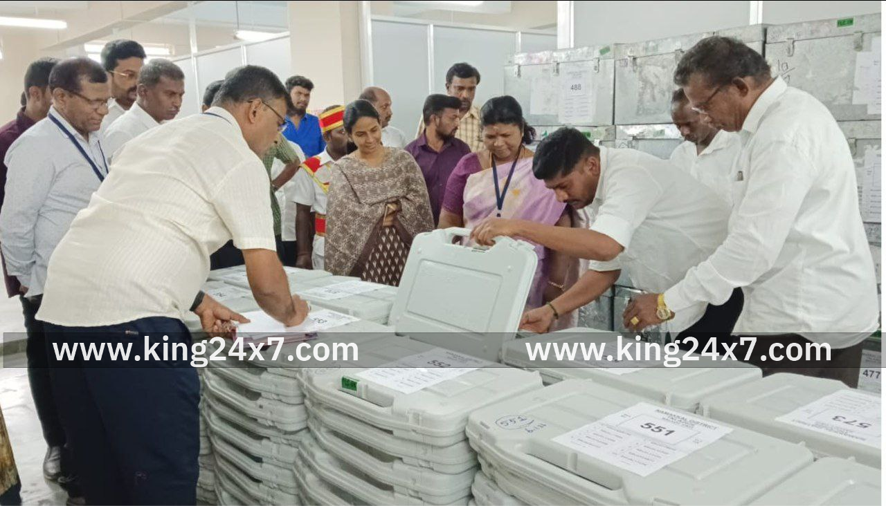 மின்னணு வாக்குப்பதிவு இயந்திரங்களின் முதல்நிலை சரிபார்ப்பு பணி முடிவடைந்து, மாதிரி வாக்குப்பதிவு நடைபெறுவதை பார்வையிட்டு ஆய்வுமேற்கொண்ட மாவட்ட ஆட்சியர்.