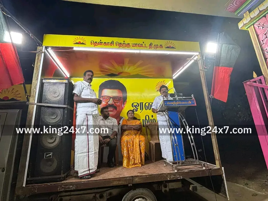 தென்காசி மாவட்டம் ஆலங்குளம் ஒன்றியம் கே.நவநீதகிருஷ்ணாபுரத்தில் கனிமொழி எம்பி பிறந்தநாள் விழா மற்றும் திமுக அரசின் சாதனை விளக்கப் பொதுக் கூட்டம் இன்று நடந்தது கூட்டத்திற்கு தென்காசி தெற்கு மாவட்ட திமுக செயலாளர் ஜெயபாலன் தலைமை வகித்து சிறப்புரையாற்றினார் ஆலங்குளம் வடக்கு ஒன்றிய செயலாளர் அன்பழகன் உள்ளிட்ட பலர் கலந்து கொண்டனர்