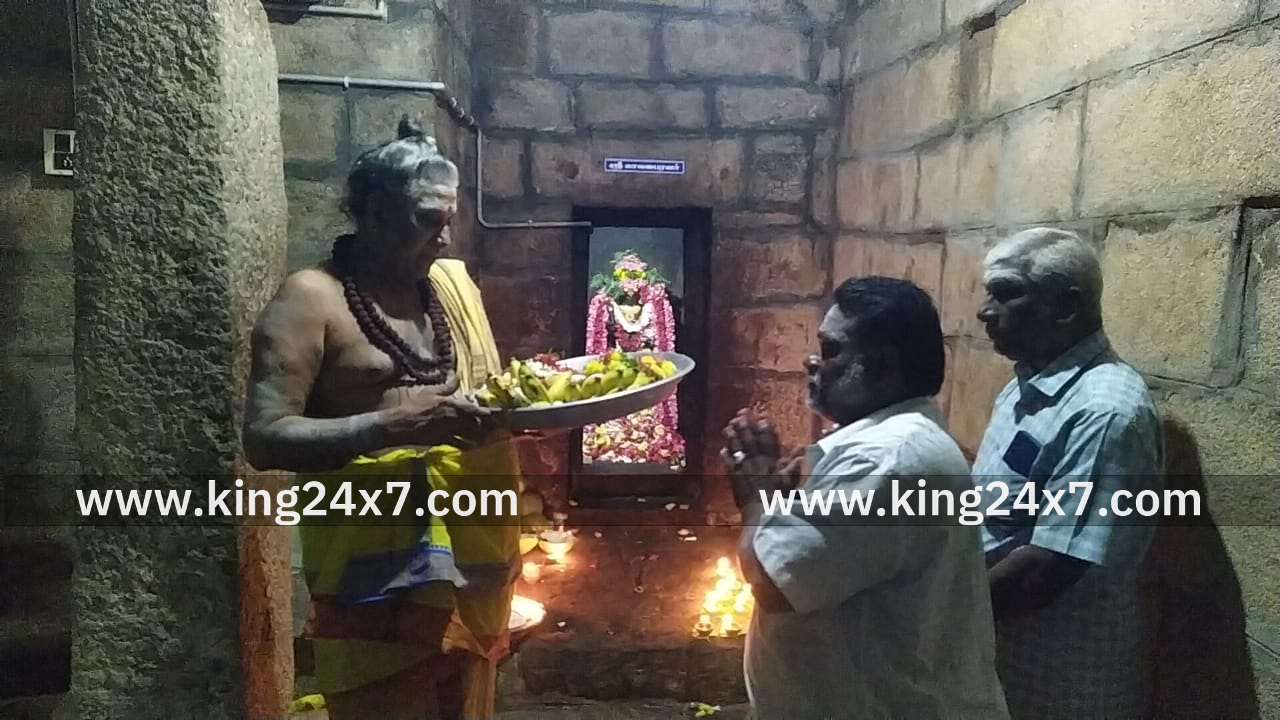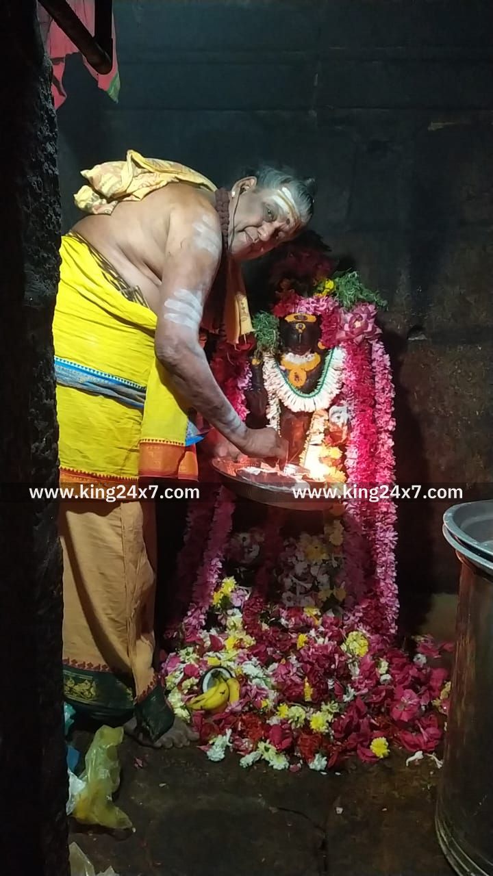 கரூர் மாவட்டம் குளித்தலை அருகே ஆர்.டி மலையில் உள்ள ஶ்ரீ விராச்சிலேஸ்வரர் மற்றும் பெரியநாயகி அம்மன் திருக்கோவிலில் சுவர்னகால பைரவ அஸ்டமி பூஜை இன்று நடைபெற்றது. இதில் கலந்துகொண்ட பக்தர்களுக்கு பிரசாதத்துடன் வடை, தயிர் சாதம் வழங்கப்பட்டது. இந்த பூஜையில் பைரவர் வேண்டுதலுடன் பிறந்த குழந்தை சார்பில் சிறப்பு அபிஷேக பூஜை நடைபெற்றது. இந்நிகழ்ச்சியை ஸ்ரீ கந்த சுப்பிரமணிய சிவாச்சாரியார் மற்றும் வேதரத்தின் சிவம் செய்திருந்தனர்.