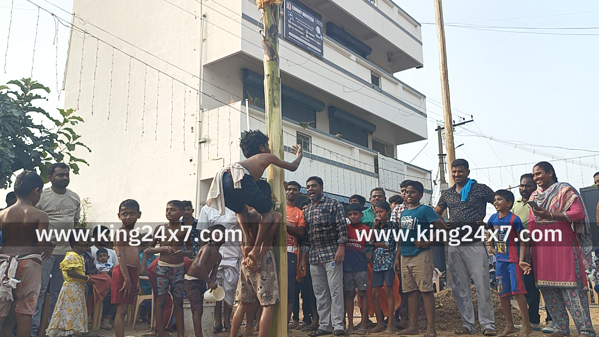 திருச்செங்கோடு குமரமங்கலம் பகுதியில் புதுமையான முறையில் வாழை மரத்தில் வழுக்கு மரம் ஏறும் போட்டி சிறுவர்கள் மட்டும் பங்கு பெற்ற இந்த நிகழ்சி புதுமையானதாக இருந்ததால் பெரும் வரவேற்பை பெற்றது;