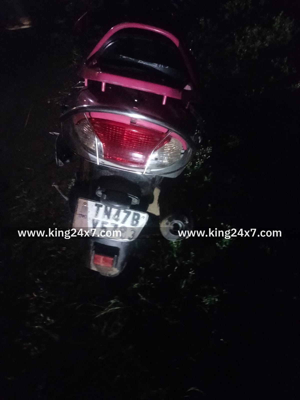 கரூர் மாவட்டம் குளித்தலை அருகே உள்ள பரளியை சேர்ந்தவர் சின்னத்துரை மகன் விஜயகுமார் (30). இவர் நாமக்கல்லில் ஒரு ஹோட்டலில் சமையல் வேலை செய்து வந்துள்ளார். இவர் இன்று இரவு புலியூரில் உள்ள தனது மாமியார் வீட்டிற்கு செல்வதற்காக தனது ஸ்கூட்டியில் மனைவி சௌந்தர்யா வயது 25. ஒரு வயது பெண் குழந்தையான சன்மதியுடன் தனது ஸ்கூட்டரில் புலியூரை நோக்கி சென்ற போது லாலாபேட்டை மேம்பாலத்தில் கரூரிலிருந்து எதிரே வந்த டெக்ஸ்டைல் பேருந்து மோதியதில் சம்பவ இடத்திலேயே மூன்று பேரும் உடல் நசுங்கி பரிதாபமாக உயிரிழந்தனர். கரூர் அரசு மருத்துவமனைக்கு பிரேத பரிசோதனைக்கு மூன்று உடல்களும் வாகன மூலம் கொண்டு சொல்லப்பட்டது
