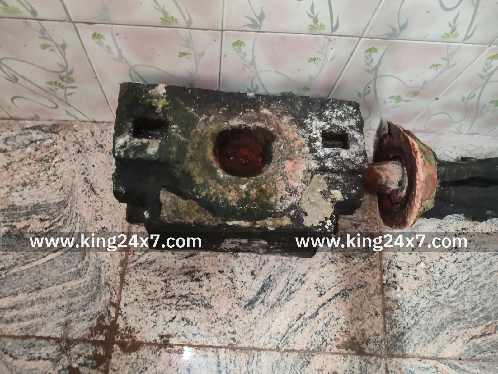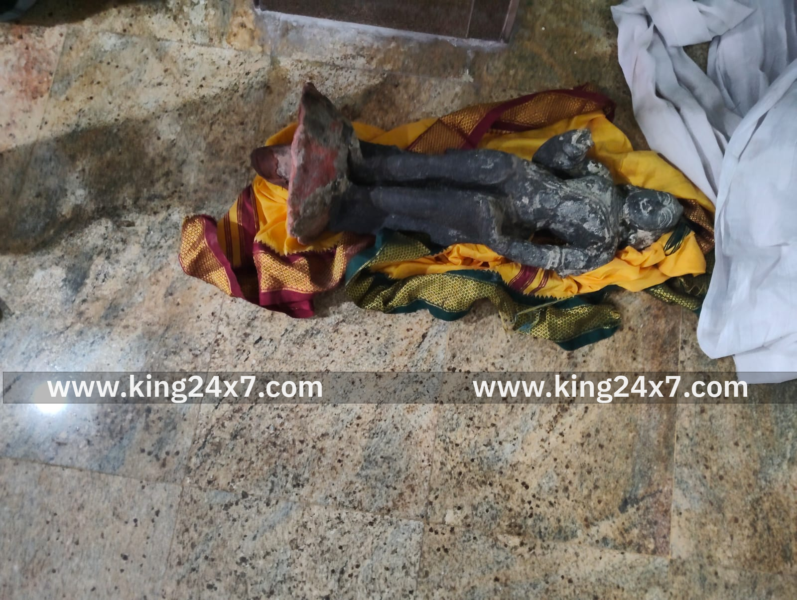 கரூர் மாவட்டம் குளித்தலை அருகே தோகைமலையில் உள்ள மலை உச்சியில் பாலதண்டாயுதபாணி திருக்கோவில் உள்ளது. இங்குள்ள கருவறை சிலை கடந்த வருடம் அர்ச்சகர் மூலம் மாற்றப்பட்டு புதிய சிலை வைக்கப்பட்டது குறித்து பக்தர்கள் அதிர்ச்சி அடைந்துள்ளனர். இதுகுறித்து சங்கிலி முத்து அளித்த புகாரின் பேரில் இந்து சமய அறநிலையத்துறை அதிகாரிகள் மூலம் மலை உச்சியில் உள்ள குளத்தில் இருந்து நேற்று சிலை மீட்கப்பட்டு பாதுகாப்பு பெட்டகத்தில் வைத்தனர். அதன் வீடியோ தற்போது வைரலாகி வருகிறது.