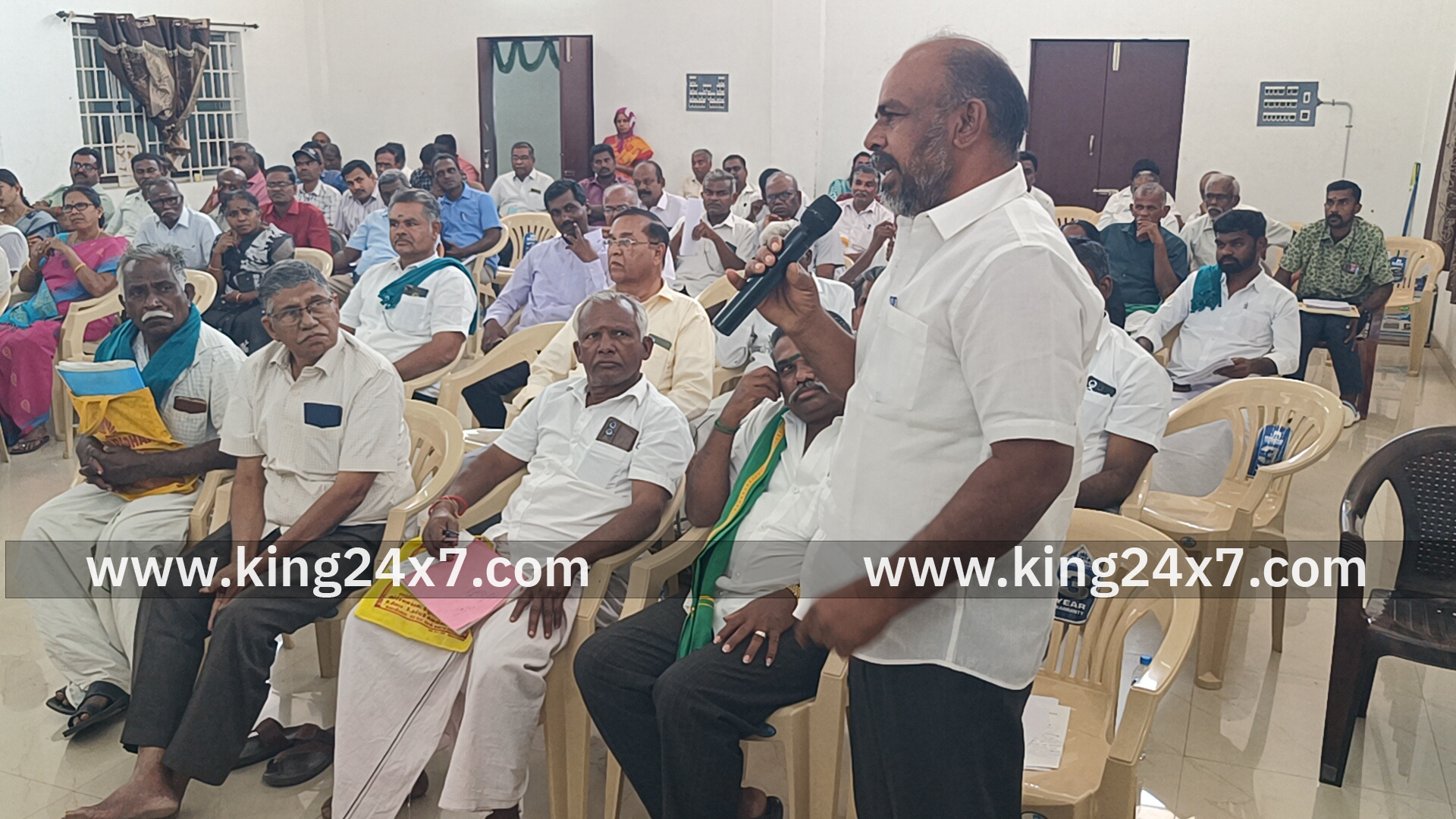 திருச்செங்கோட்டில் நடந்த தமிழ்நாடு அரசின் உழவர் நலத்துறை சார்பில் திருச்செங்கோடு வருவாய் கோட்டத்திற்கு உட்பட்ட மூன்று சட்டமன்ற தொகுதிகளை சேர்ந்த விவசாயிகள் குறைதீர்கூட்டம் திருச்செங்கோடு ஒன்றிய அலுவலக கூட்ட அரங்கில் நடைபெற்றது கூட்டத்திற்கு வருவாய் கோட்டாட்சியர் பொறுப்பு முருகன் தலைமை வகித்தார்.வட்டார வளர்ச்சி அலுவலர் ஊராட்சிகள் அருளப்பன்,இன்ஸ்பெக்டர் ஆப் சர்வேயர் சரவணன்,வேளாண்மை துறை உதவி இயக்குனர் செந்தில்குமார் துணை வேளாண்மை அலுவலர் குழந்தைவேல் ஆகியோர் உள்ளிட்ட வருவாய்த்துறை,நெடுஞ்சாலை துறை உள்ளிட்ட பல்வேறு துறை அலுவலர்கள் கூட்டத்தில் கலந்து கொண்டனர். கூட்டத்தில் பேசியவிவசாயி பூபாலன் என்பவர்எங்கள் பகுதியில் பன்றி பண்ணை இருப்பது குறித்து பலமுறை புகார் அளித்தோம். மாவட்ட நிர்வாகத்திற்கும் புகார் அளித்தோம் இதுகுறித்து விசாரித்து அறிக்கை அளித்த அதிகாரிகள்500 மீட்டர் தொலைவுக்குள் பன்றி பண்னை இருக்கக் கூடாது குடியிருப்பிருக்கும் பகுதிக்குள்பன்றி பண்ணைகள் கூடாது என்று சட்டம் இருந்தும்பன்றி பண்ணை ஊருக்கு ஒரு கிலோ மீட்டருக்கு அந்த பக்கம் இருப்பதாக அறிக்கை கொடுத்துள்ளனர்.இதனை அதிகாரிகள் நேரில் வந்து ஆய்வு மேற்கொள்ள வேண்டும் தவறான தகவல் கொடுத்த அதிகாரிகள் மீது நடவடிக்கை எடுக்க வேண்டும். விவசாயி பூபாலன்நாங்கள் ஒரு தகவல் கேட்டால் வேறொரு தகவலை கொடுத்து திசை திருப்பும் வேலையில் ஈடுபடும் அதிகாரிகளுக்கு பாராட்டு விழா நடத்த உள்ளோம் இவ்வாறு தகவல் கொடுத்த அந்த இரண்டு அதிகாரிகள் யார் என எங்களுக்கு கூட்டத்தில் தெரிவிக்க வேண்டும்.நீர் நிலைகள் ஆக்கிரமிப்பு குறித்து பல கட்ட போராட்டங்கள் நடத்திய பிறகும் உரிய தகவல்களை தராதஅதிகாரிகள் மீது நடவடிக்கை எடுக்க வேண்டும் என கூறினார்குட்டி மேய்க்கம் பட்டியைச் சேர்ந்த விவசாயி கருப்பண்ணன் என்பவர்100 நாள் வேலை திட்ட பணியாளர்களை விவசாய பணிகளுக்கு அமர்த்திக் கொள்ளலாம் என கூறுகிறீர்களே தவிர நடவடிக்கை எடுப்பதில்லை எனவே அவர்களை விவசாய வேலைகளுக்கு பயன்படுத்தக்கூடிய அனுமதியை பெற்று தர வேண்டும்குமாரபாளையத்தைச் சேர்ந்த விவசாயி ஒருவர் பேசும்போது வாய்க்கால் பாசனம் உள்ள பகுதிகளை என சான்றிதழ் தரும் கிராம நிர்வாக அலுவலர் மீது என்ன நடவடிக்கை எடுக்க போகிறீர்கள் அந்த பகுதியில் உள்ள வாய்க்கால் பாசன விவசாயிகள் பட்டியில்லா கடன் பெற்று அறுவடை முடித்தவுடன் திருப்பி செலுத்தி வருகிறார்கள் அவ்வாறு கடன் கேட்க கிராம நிர்வாக அலுவலரின் சான்றிதழ் தேவைப்படுகிறது இதனை வாங்க சென்றால்கூட்டு பட்டாவுக்கு போட முடியாது என கூறிவிட்டு பணம் கொடுப்பவர்களுக்க