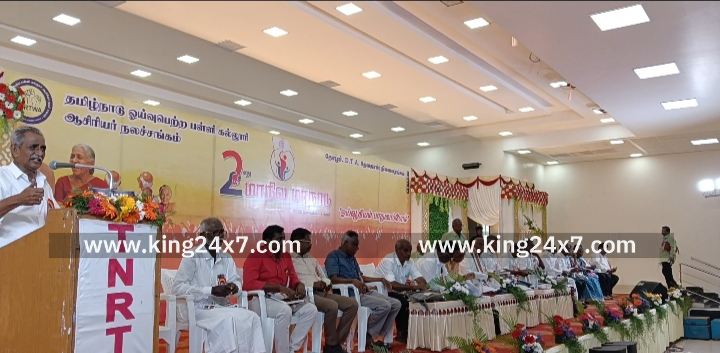 திமுக அளித்த தேர்தல் வாக்குறுதியை நிறைவேற்றாவிட்டால் வரும் தேர்தலில் தமிழ்நாடு ஓய்வு பெற்ற பள்ளி-கல்லூரி ஆசிரியர்கள் நலச் சங்கத்தினரின் ஒரு கோடி ஓட்டுகள் எதிரொலிக்கும்- பர்வதராஜன் கரூரில் பேட்டி. தமிழ்நாடு ஓய்வு பெற்ற பள்ளி- கல்லூரி ஆசிரியர் நலச் சங்கத்தின் இரண்டாவது மாநில மாநாடு கரூர் வட்டார போக்குவரத்து அலுவலகம் எதிரில் உள்ள தனியார் கூட்ட அரங்கில் சங்கத்தின் மாநிலத் தலைவர் முரளிதரன் தலைமையில் நடைபெற்றது. இந்த மாநாட்டில் மாநில பொருளாளர் கிருஷ்ணன், தமிழ்நாடு ஆரம்ப பள்ளி ஆசிரியர் கூட்டணியின் மாநில பொருளாளர் கணேசன், தென்மண்டல இன்சூரன்ஸ் ஊழியர் கூட்டமைப்பின் முன்னாள் பொதுச் செயலாளர் சுவாமிநாதன், துணை பொது செயலாளர் மனோகர் ஜஸ்டஸ் உள்ளிட்ட சங்கத்தின் மாநில மாவட்ட நிர்வாகிகள் உறுப்பினர்கள் என ஏராளமானோர் கலந்து கொண்டனர். இந்த மாநாட்டில் பல்வேறு கோரிக்கைகளை வலியுறுத்தி 19 தீர்மானங்கள் நிறைவேற்றப்பட்டது. நிகழ்ச்சியின் நிறைவில் செய்தியாளர்களை சந்தித்த சங்கத்தின் பொதுச் செயலாளர் பர்வதராஜன், கடந்த மார்ச் மாதம் பாராளுமன்றத்தில் இரவு நேரத்தில் ஓய்வூதியர்களின் உரிமையை பறிக்கக் கூடிய மசோதாவை நிறைவேற்றி உள்ளது. எனவே இந்த மசோதாவை உடனடியாக திரும்ப பெற வேண்டும். திரும்ப பெறு பெறுவதற்காக அகில இந்திய அளவில் ஓய்வூதியர் அனைவரையும் ஒருங்கிணைத்து காஷ்மீர் முதல் கன்னியாகுமரி வரை மாபெரும் போராட்டங்கள் நடத்த இந்த மாநாட்டின் மூலம் ஏற்பாடு செய்யப்படும் என தெரிவித்தார். தொடர்ந்து பேசிய அவர், தமிழகத்தில் திமுக தேர்தல் காலத்தில் அளித்த வாக்குறுதியை போல, ஓய்வூதியர்களுக்கு 70 வயது வரும்போது 10% ஓய்வூதியம் உயர்வு வழங்க வேண்டும். மேலும் பழைய ஓய்வூதிய திட்டத்தை நடைமுறைப்படுத்துவோம் என தெரிவித்தது போல நிறைவேற்ற வேண்டும் எனவும், தமிழகத்தில் ஓய்வு பெற்ற ஆசிரியர்கள் ஏறத்தாழ ஒரு கோடி பேர் மற்றும் அவர்களது குடும்பத்தினர் உள்ளனர். தேர்தல் காலத்தில் பழைய ஓய்வூதிய திட்டத்தினை நிறைவேற்றுவோம் என கூறியதை நிறைவேற்றாவிட்டால் அது தேர்தலில் எதிரொலிக்கும் என தெரிவித்தார். பேட்டி: பர்வதராஜன்- பொதுசெயலாளர், தமிழ்நாடு ஓய்வு பெற்ற பள்ளி கல்லூரி ஆசிரியர் நலச்சங்கம்.