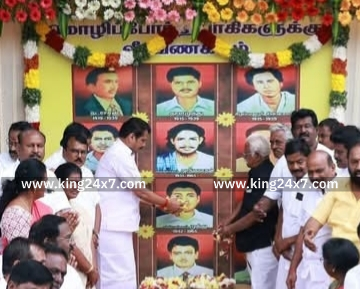 மொழிப்போர் தியாகிகளுக்கு வீரவணக்கம் செலுத்திய முன்னாள் அமைச்சர் செந்தில் பாலாஜி.