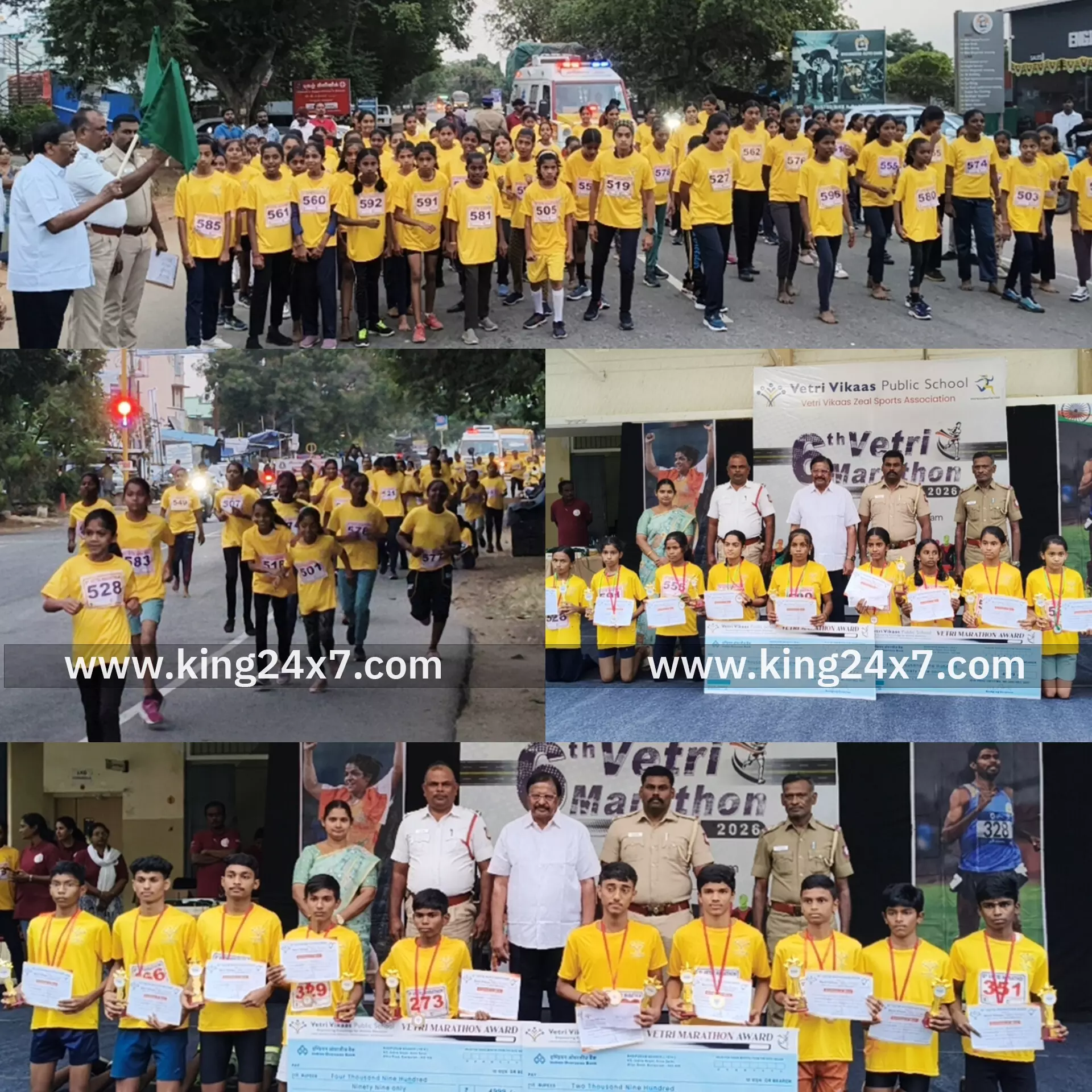 வெற்றி விகாஸ் பப்ளிக் பள்ளி சார்பில் "மாரத்தான்" போட்டி : ஏராளமான மாணவ மாணவிகள் பங்கேற்பு...