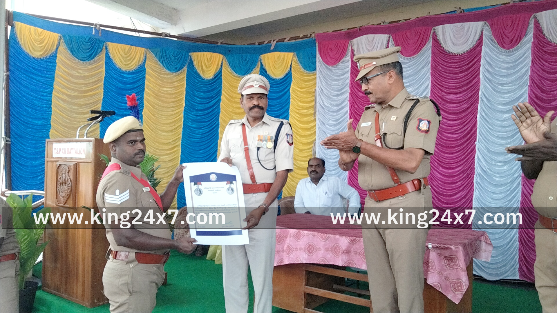 ராமநாதபுரம் மாவட்டம்தமிழ்நாடு சிறப்பு காவல் படை பன்னிரண்டாம் அணியினர் குடியரசு தின விழாவை கொடியேற்றி விமர்சையாக கொண்டாடினர். நாட்டின் 77 வது குடியரசு தின விழா இந்தியா முழுவதும் இன்று விமர்சையாக கொண்டாடப்பட்டது. குடியரசு தின விழாவையொட்டி அரசு அலுவலகங்கள் மற்றும் காவல் நிலைய கட்டிடங்களில் தேசிய கொடி ஏற்றி மரியாதை செலுத்த வேண்டும் என அரசு உத்தரவிட்டிருந்தது. அதன் அடிப்படையில் ராமநாதபுரம் சக்கரகோட்டை பகுதியில் செயல்பட்டு வரும் தமிழ்நாடு சிறப்பு காவல் படை பனிரெண்டாம் அணியை சேர்ந்த காவலர்கள் இன்று அந்த வளாகத்தில் உள்ள கொடிமரத்தில் தேசிய கொடி ஏற்றி மரியாதை செலுத்தி குடியரசு தின விழாவை விமர்சையாக கொண்டாடினர். குடியரசு தின விழாவை ஒட்டி தமிழ்நாடு சிறப்பு காவல் படை 12 ஆம் அணி வளாகத்தில் இருந்த தேசிய கொடியினை கமாண்டன்ட் முருகேசன் ஏற்றி வைத்தார் இந்நிகழ்வில் துணை ஆணையர் ஜெயந்தி, உதவி ஆணையர் ஈஸ்வர பிரசாத், ஆய்வாளர் சலீம் உள்ளிட்டோர் கலந்துகொண்டு காவல் படை 12 அணியில் சிறப்பாக பணியாற்றிய காவலர்களுக்கு பதக்கம் வழங்கினர்.