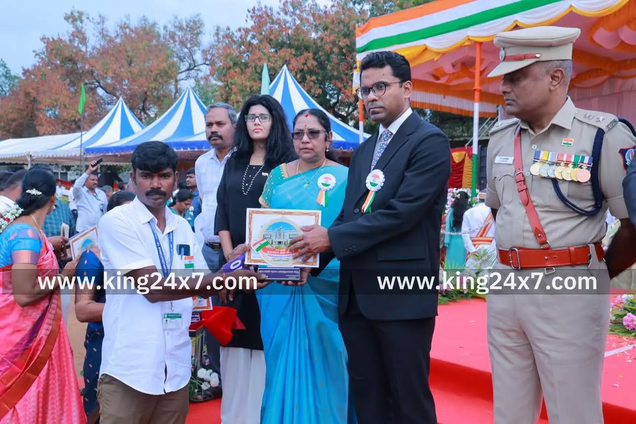 கள்ளக்குறிச்சி மாவட்டம்,77 வது குடியரசு தின விழாவில் மாவட்ட ஆட்சியர் அவர்களின் திருகரங்களால் சிறந்த பணியாளர் நற்சான்றிதழ் பெற்ற சங்கராபுரம் பேரூராட்சி மன்ற தூய்மை மேற்பார்வையாளர் திரு. ரவி அவர்கள்;