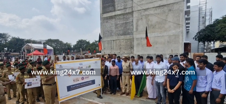 சாலை விபத்துக்களால் ஏற்படும் உயிரிழப்புகளை மாணாக்கர்கள் தடுக்க முடியும். கரூரில் முன்னாள் அமைச்சர் செந்தில் பாலாஜி மாணாக்கர்களுக்கு வேண்டுகோள். தமிழகத்தில் சாலை விபத்துக்களால் உயிரிழப்புகள் அதிகரித்து வருவதை அண்மைக்கால ஆய்வு தெளிவுபடுத்தி உள்ளது. விபத்துகளை தடுக்கவும் விபத்துகளால் ஏற்படும் உயிரிழப்புகளை தடுக்கவும் ஆண்டுதோறும் தமிழக அரசு பல்வேறு விழிப்புணர்வு நிகழ்ச்சிகளை நடத்தி வருகிறது. குறிப்பாக கரூர் மாவட்டத்தில் சாலை விபத்துகளில் உயிரிழப்பு அண்மை காலமாக அதிகரித்து வருகிறது. இதனை தடுப்பதற்காக இன்று கரூர் திருவள்ளூர் மைதானத்தில் கரூரில் செயல்படும் இளம் தொழில் முனைவோர் அமைப்பான Young Indian அமைப்பு சார்பில் நடைபெற்ற சாலை பாதுகாப்பு விழிப்புணர்வு பேரணியை முன்னாள் அமைச்சர் செந்தில் பாலாஜி, மாவட்ட ஆட்சியர் தங்கவேல், மாவட்ட காவல் கண்காணிப்பாளர் ஜோஸ் தங்கையா ஆகியோர் கொடியசைத்து தொடங்கி வைத்தனர். இந்த பேரணியில் 1000க்கும் மேற்பட்ட பள்ளி கல்லூரி மாணவ - மாணவிகள் விபத்துக்கள் ஏற்படாத வண்ணமும், அதை தடுப்பதற்கு தேவையான பாதுகாப்பை மேற்கொள்வது குறித்த வாசகங்கள் அடங்கிய விழிப்புணர்வு பதாகைகளை கையில் ஏந்தியவாறு கரூர் திருவள்ளுவர் திடலில் துவங்கி நகரின் முக்கிய சாலை வழியாக சென்று பொது மக்களிடையே விழிப்புணர்வை ஏற்படுத்திவிட்டு மீண்டும் திருவள்ளுவர் மைதானத்தை அடைந்தது. இந்த பேரணியைத் தொடங்கி வைத்த செந்தில்பாலாஜி் மாணாக்கர்கள் இடையே பேசுகையில், அடுத்த ஆண்டுக்குள் கரூர் மாவட்டத்தில் சாலை விபத்துகளில் ஏற்படும் உயிரிழப்புகளை தடுக்க பெருமளவு இந்த பேரணியில் கலந்து கொண்ட மாணவர்களால் முடியும் என்றும் ஒவ்வொரு மாணவரும் தங்கள் வீட்டில் உள்ள பெற்றோர் உறவினர்கள் இருசக்கர வாகனத்தில் செல்லும்போது கட்டாயம் ஹெல்மெட் அணிந்து செல்ல வேண்டும் என வலியுறுத்துவதன் மூலம் விபத்துக்களை குறைக்கலாம். அதன் மூலம் உயிரிழப்புகளை தவிர்க்கலாம் என மாணாக்கர்களுக்கு வேண்டுகோள் விடுத்தார். இந்த நிகழ்ச்சியில் கரூர் மாவட்ட தொழில் கூட்டமைப்பின் தலைவர் பாலசுப்ரமணி யங் இந்தியா அமைப்பின் நிர்வாகி கார்த்திக் உள்ளிட்ட நிர்வாகிகள் கலந்து கொண்டு சிறப்பித்தனர்.