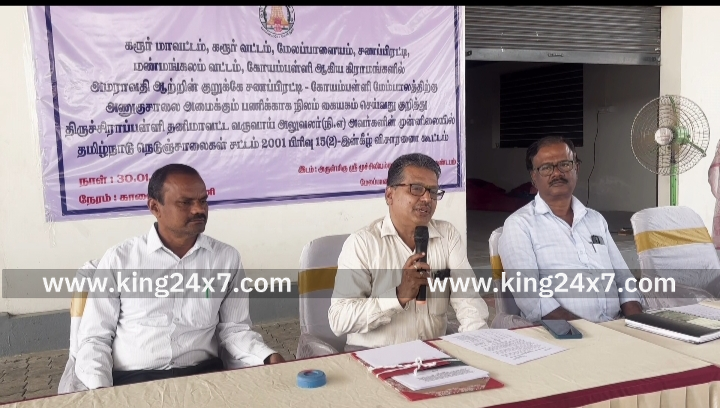 கரூரில் பல கோடி ரூபாய் மதிப்பில் கட்டி மக்கள் பயன்பாட்டிற்கு கொண்டுவரப்படாத பாலத்திற்கு இணைப்பு சாலை அமைக்க பொதுமக்கள் கருத்து கேட்பு கூட்டம் நடைபெற்றது. கரூர் மாவட்டம் மன்மங்கலம் தாலுக்கா மேலப்பாளையம்-கோயம்பள்ளி இடையே அமராவதி ஆற்றின் குறுக்கே பல கோடி ரூபாய் மதிப்பில் கடந்த அதிமுக ஆட்சியில் போக்குவரத்து துறை அமைச்சராக இருந்த செந்தில் பாலாஜியினுடைய முனைப்பால் பாலம் கட்டி முடிக்கப்பட்டது. ஆனால் சில காரணங்களுக்காக அந்தப் பாலப்பணிகள் முடிவடைந்தும் பாலத்திற்கான இணைப்பு சாலை அமைக்கப்படாமல் இருந்தது. இதனால் அமராவதி ஆற்றின் இரு கரை பகுதிகளில் வசிக்கக்கூடிய விவசாயிகள், பொதுமக்கள், மாணாக்கர்கள் இந்த பாலத்தை பயன்படுத்த முடியாமல் அவதிப்பட்டு வந்தனர். இது தொடர்பாக பலமுறை மாவட்ட நிர்வாகத்திற்கும், சம்பந்தப்பட்ட துறை அதிகாரிகளுக்கும் முறையிட்டும் இணைப்பு சாலை அமைக்கப்படவில்லை. அண்மைக்காலமாக இது தொடர்பாக சமூக வலைத்தளங்களில் கேள்வி எழுப்பப்பட்டது. இதன் தொடர்ச்சியாக விரைவில் இணைப்பு சாலை அமைக்கப்படும் என முன்னாள் அமைச்சர் செந்தில் பாலாஜி கடந்த மாதம் தெரிவித்தார். இதனைத் தொடர்ந்து இன்று மேலப்பாளையம் பகுதியில் உள்ள கோவில் மண்டபத்தில் பாலத்திற்கு இணைப்பு சாலை அமைக்க நிலம் கையாக படுத்த வேண்டி இருப்பதால் அது தொடர்பாக பொதுமக்கள் கருத்துக்கேற்ப கூட்டம் திருச்சி மாவட்ட நில எடுப்பு உதவி ஆட்சியர் சரவணன் தலைமையில் நடைபெற்றது. இந்த கூட்டத்தில் நிலமெடுப்பு துறை டிஆர்ஓ ரம்யா தேவி, ஈரோடு நபார்டு கோட்ட பொறியாளர் முருகேசன், கரூர் ஏ டி ஏ திருமால் செல்வன் உள்ளிட்ட அதிகாரிகளும் சம்பந்தப்பட்ட கிராம பெரியவர்களும் ஊர் பொதுமக்களும் கலந்து கொண்டனர். எங்க கூட்டத்தில் இணைப்பு சாலை அமைப்பதற்கு ஏற்கனவே வரைவு செய்யப்பட்ட நிலத்தை கையகப்படுத்துவது தொடர்பாக பொதுமக்களின் கருத்துக்களை அதிகாரிகள் கேட்டனர். பல வருடங்களாக இந்த திட்டம் செயல்படுத்தாமல் இருந்தமைக்கு பொதுமக்கள் முதலில் எதிர்ப்பு தெரிவித்த போதும் விரைவில் பாலத்தை மக்கள் பயன்பாட்டுக் கொண்டு வர சாலை அமைக்க வேண்டும் என கோரிக்கை விடுத்தனர்.